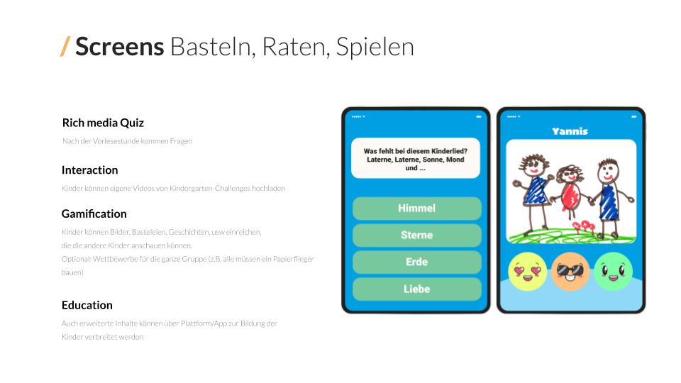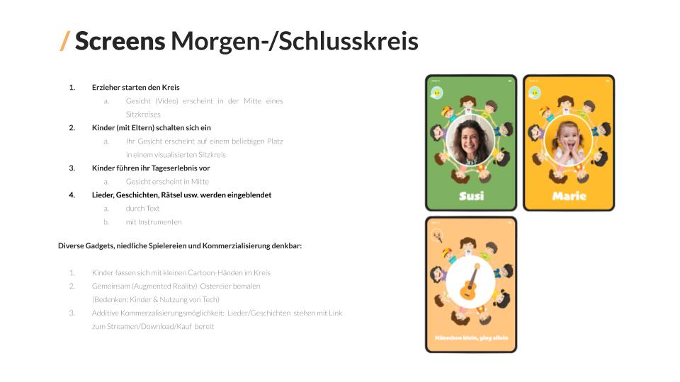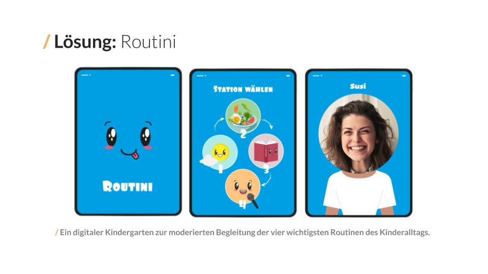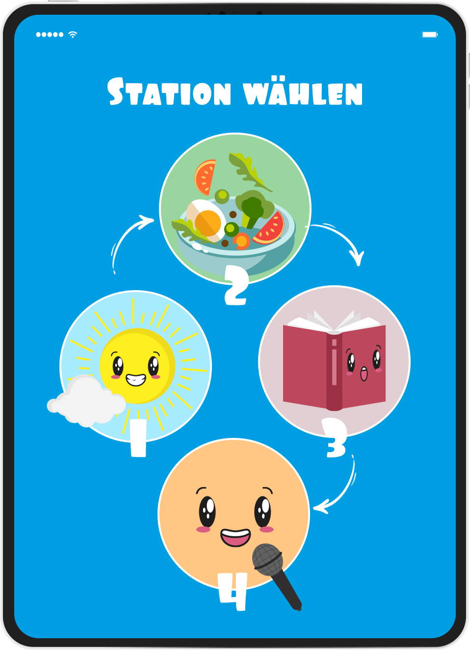 Ein digitaler Kindergarten zur moderierten Begleitung der vier wichtigsten Routinen des Kinderalltags.