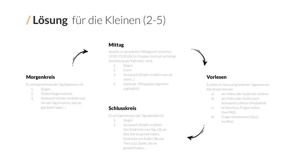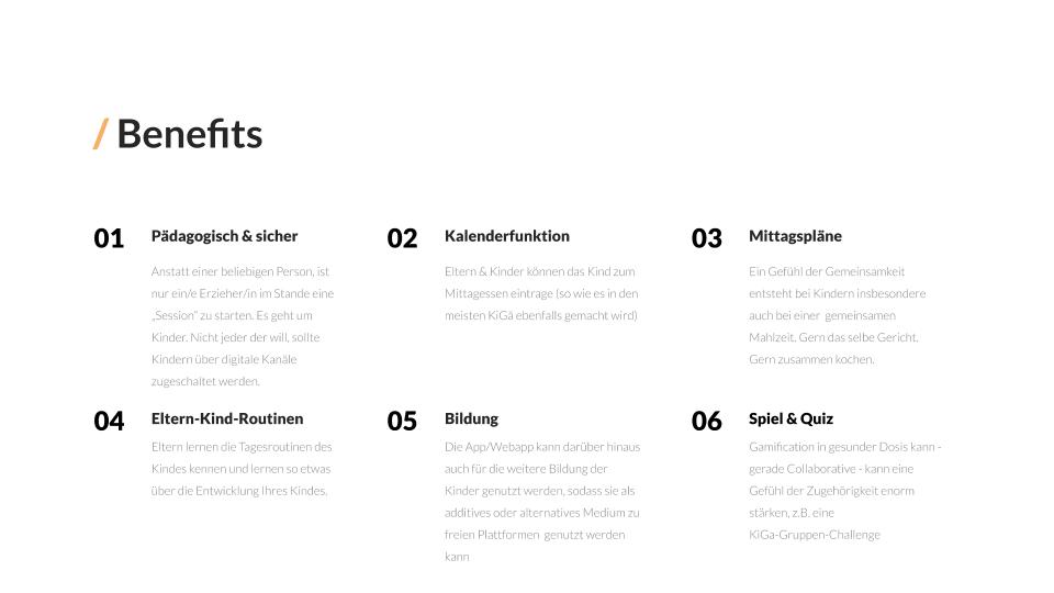 Wir würden nun mal ab Montag versuchen eine paar Rückmeldungen von pot. Anwendungsgruppen (Eltern/Erzieher/innen) sowie Interessengruppen (Kita-Träger/Stadt) zu bekommen und würden uns natürlich freuen, wenn wir noch mit in die Abstimmung kommen würden.