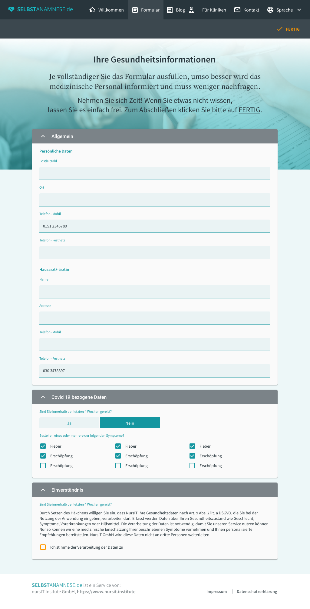 Durch die aktuelle Corona-Pandemie sind vorbereitete Gesundheitsinformationen wichtiger denn je. Denn dies spart wertvolle Zeit, Ressourcen und sichert die Beachtung aller relevanten Informationen für eine effiziente Behandlung.