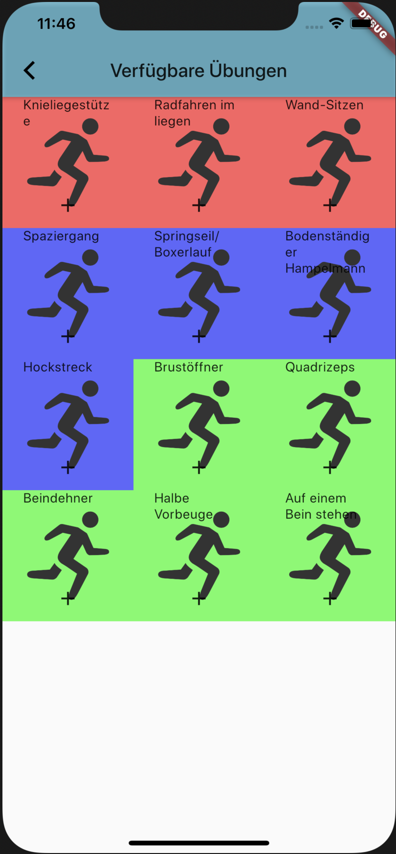 Das Ziel unserer App ist es, dass die Nutzer*innen zu Hause Sport treiben. Als Anreiz dafür dienen die Erfolgs- und Lernerlebnisse durch das Freischalten neuer Übungen und das Sammeln von Erfahrungspunkten. Je nach vorher festgelegtem Fitness-Niveau starten die Nutzer*innen mit angepassten Übungen. Vom absoluten Anfänger bis zum Voll-Profi kann sich so jeder individuell verbessern. Aus allen freigeschalteten Übungen kann man sich einen individuellen Trainingsplan zusammenstellen.