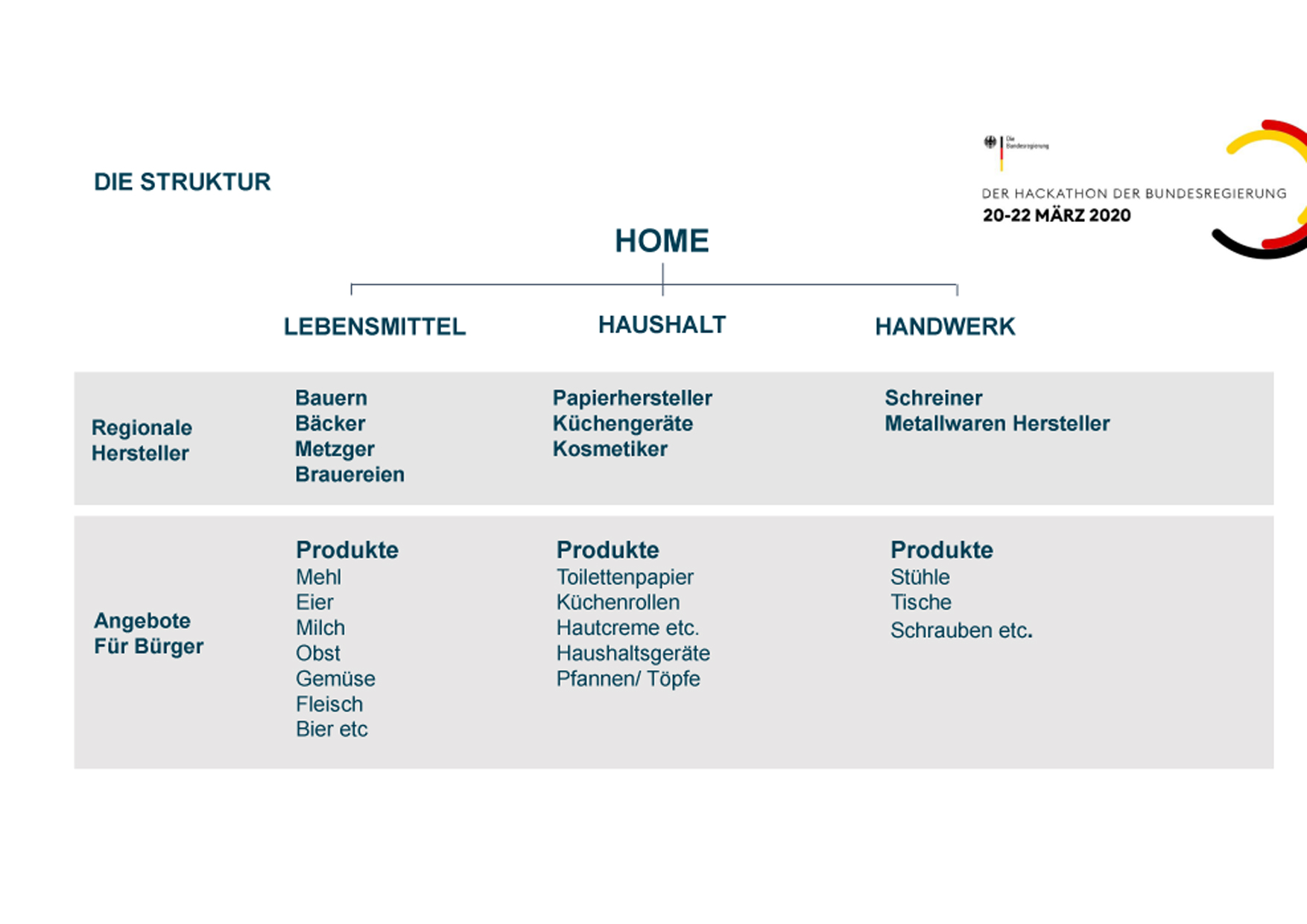Unser Warum Fragestellung: Was brauch jeder einzelne von uns für die Versorgung / Selbstversorgung? Um den "Need" und den "Schmerz" der Bevölkerung zu lindern? Denn darum geht es! Also, der Focus liegt auf dem Bürger. Was brauch er jetzt in der aktuellen Situation und wie können wir das mit den regionalen Unternehmen verknüpfen. Beispiel: Nahrungsmittel, Milch, Mehl, Toilettenpapier ;) etc Mögliche Kooperations Unternehmen/Partner: Bäcker, Bauern, Papierfabrik Im zweiten Step folgen dann die anderen Güter, damit das Angebot ausgebaut wird.