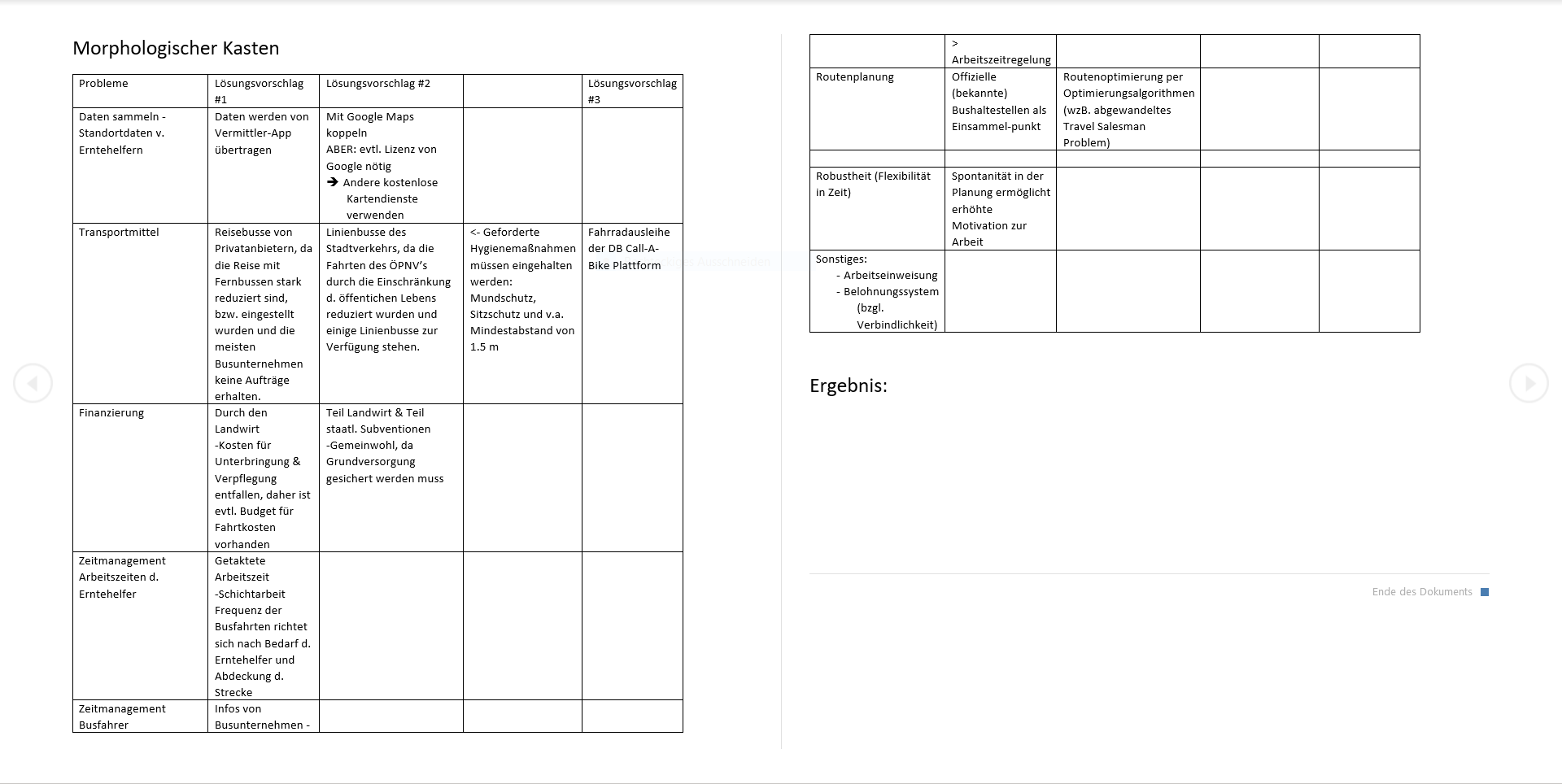 Morphologischer Kasten mit Lösungswegen Enge Kooperation mit Vermittler-Apps -> integriete Funktion des Transports