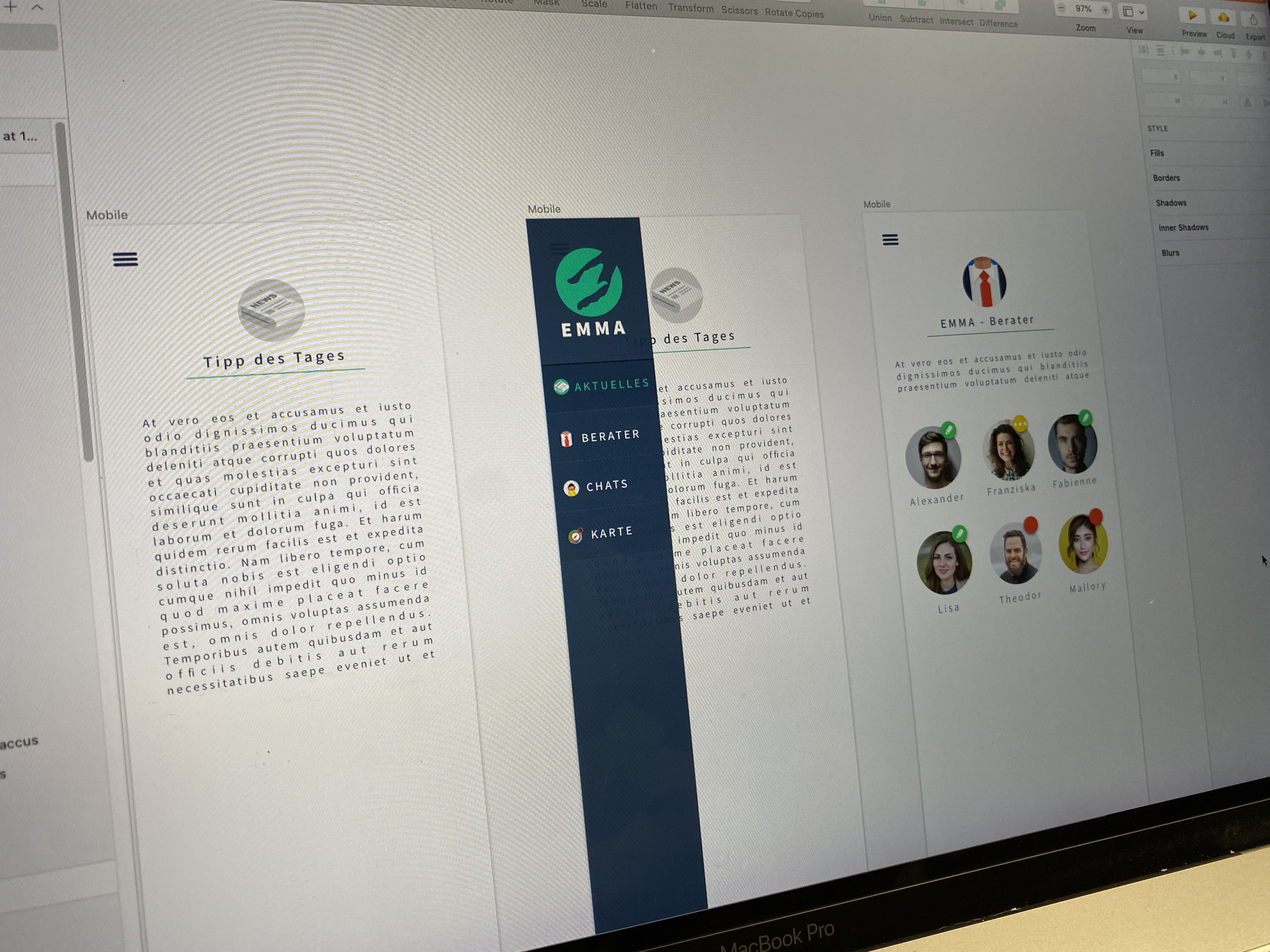 - Mit ersten Versuchen des Designs nimmt die WebApp hübsche Formen an