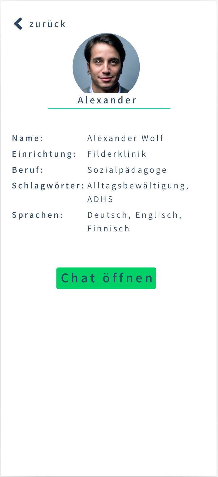 | Als Sozialarbeiterin im Jugendamt erlebe ich gerade, wie diese Krise eine Ratlosigkeit im Hilfesystem hervorruft. Die Kontaktaufnahme ist kompliziert und es drohen schwerwiegende langfristige Folgen. Die App bietet hier als Schnittstelle eine gute Lösung. | Hanna |