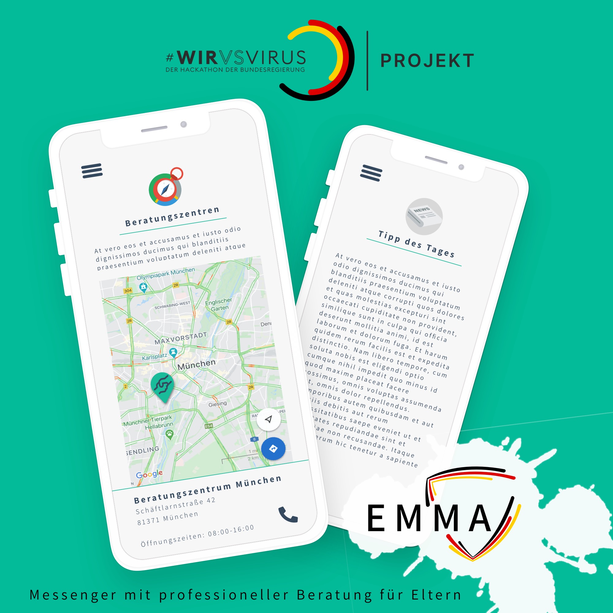 Trotz Schließzeit keine Wartezeit und Orientierung in der Beratungslandschaft. Das verspricht EMMA, unsere Eltern Mutmach Messenger App, die Eltern einen schnellen Kontakt zu professionellen Berater:innen ermöglicht. Und das ganze in Form einer intuitiv bedienbaren und lebensweltnahen App. (Gesellschaftlicher Mehrwert)
