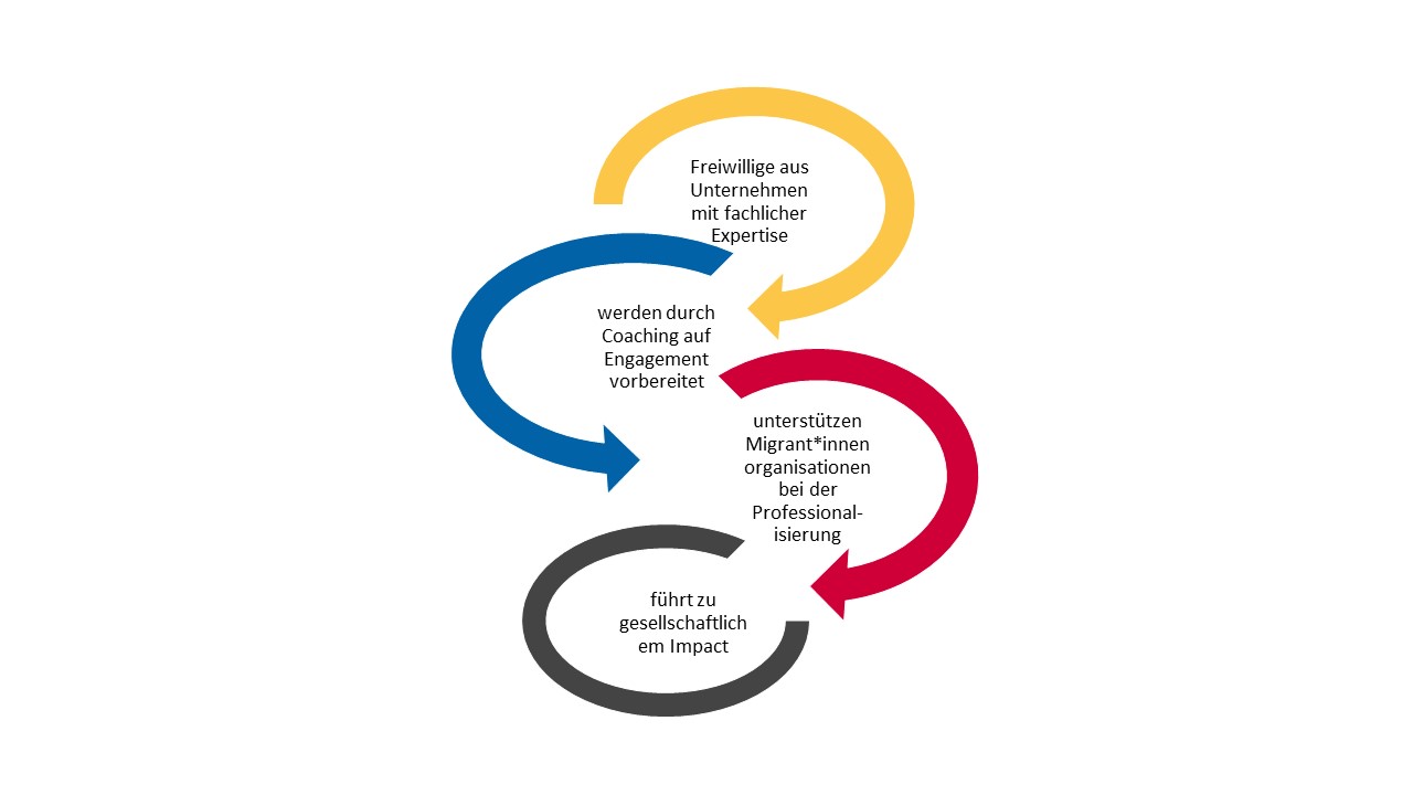 Wir wollen Hamburger Migrant*innenorganisationen, die in der freien Wohlfahrtspflege tätig sind und einen Bedarf an Organisationsentwicklung haben, damit sie ihren Sozialraum noch effektiver gestalten können mit Hamburger unternehmen zusammen bringen, die ihnen Ressourcen hierfür zur Verfügung stellen. Hierbei kann es sich bspw. um juristisches Wissen (Anfertigung von Arbeitsverträgen..), betriebswirtschaftliches Know How (erarbeitung von Geschäftsmodellen..), Kenntnisse der Verwaltung (Aufbau einer internen Verwaltungsstruktur...) oder Kenntnisse in Kommunikationsdesign (Erarbeitung von Social, Media Strategien, Erarbeitung einer Corporate Identity, Strukturierung der internen Kommunikation, Erarbeiten von Druckerzeugnissen,...) handeln.