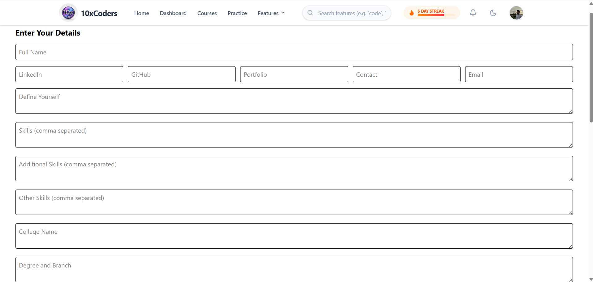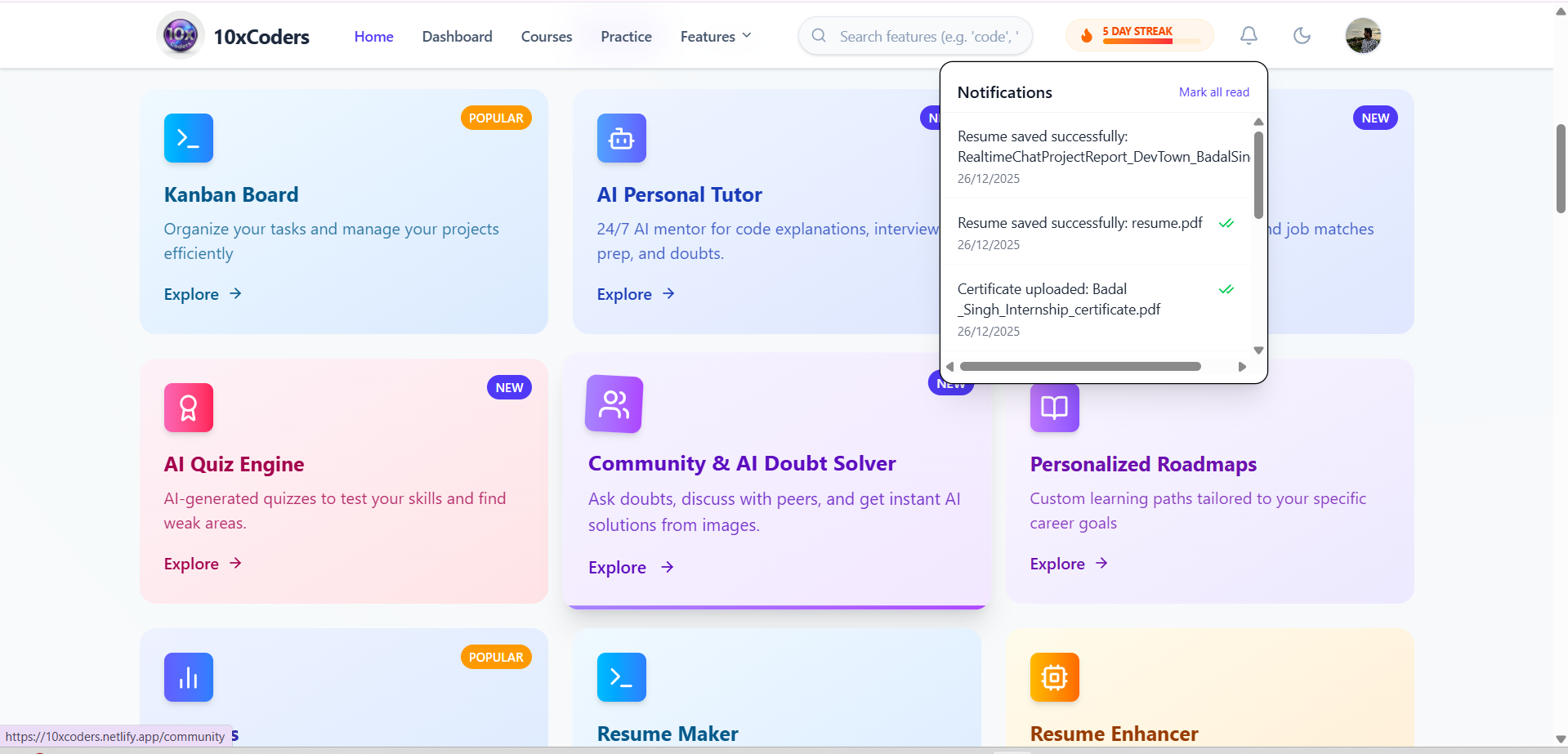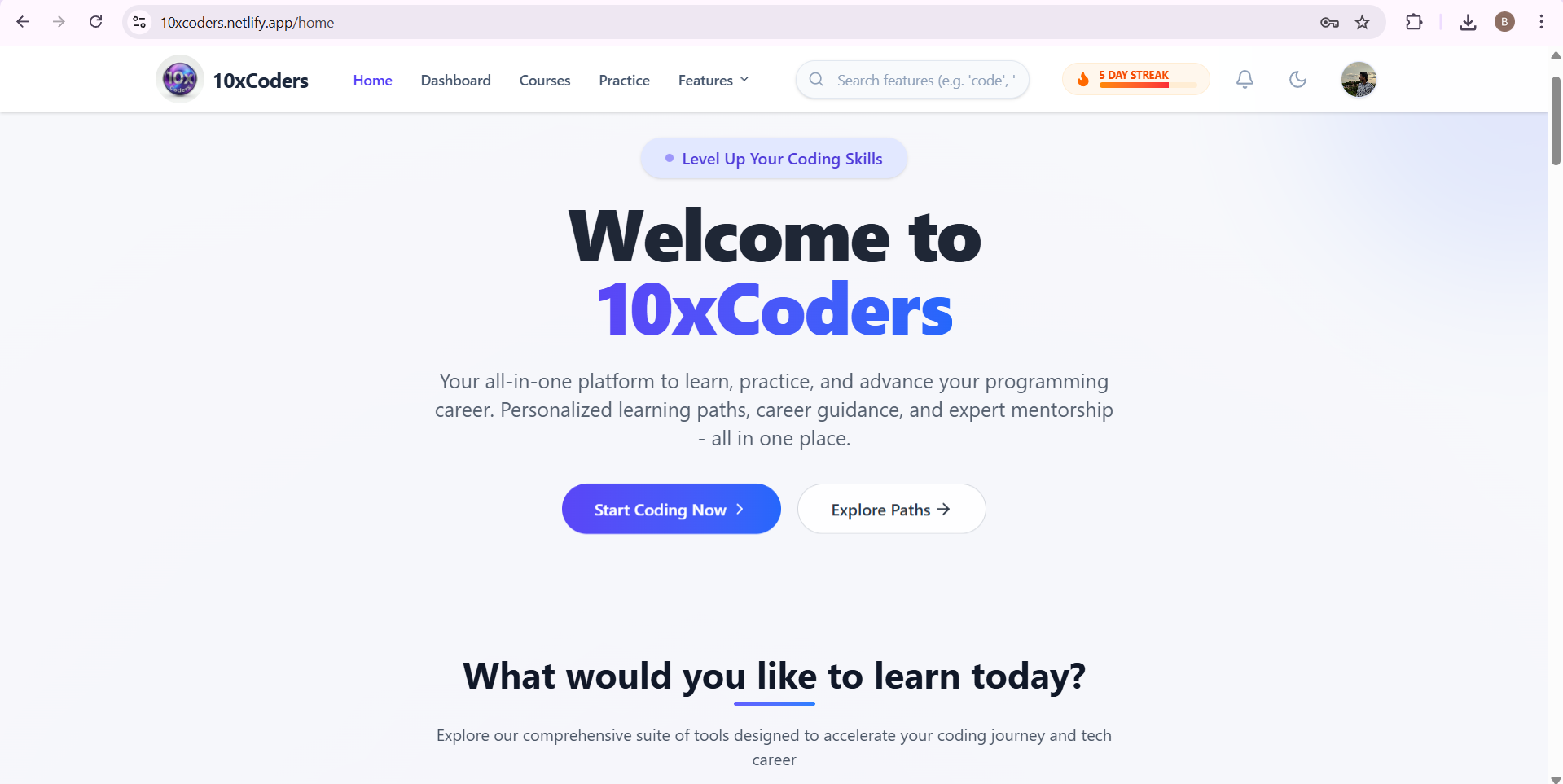 10xCoders is a full-stack, AI-powered learning and career development platform designed to help students and early professionals build skills, practice real-world problems, and prepare for tech careers — all in one place.