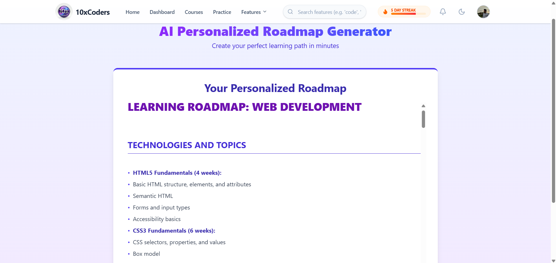 AI-generated learning paths tailored to your goals, experience level, and career direction.