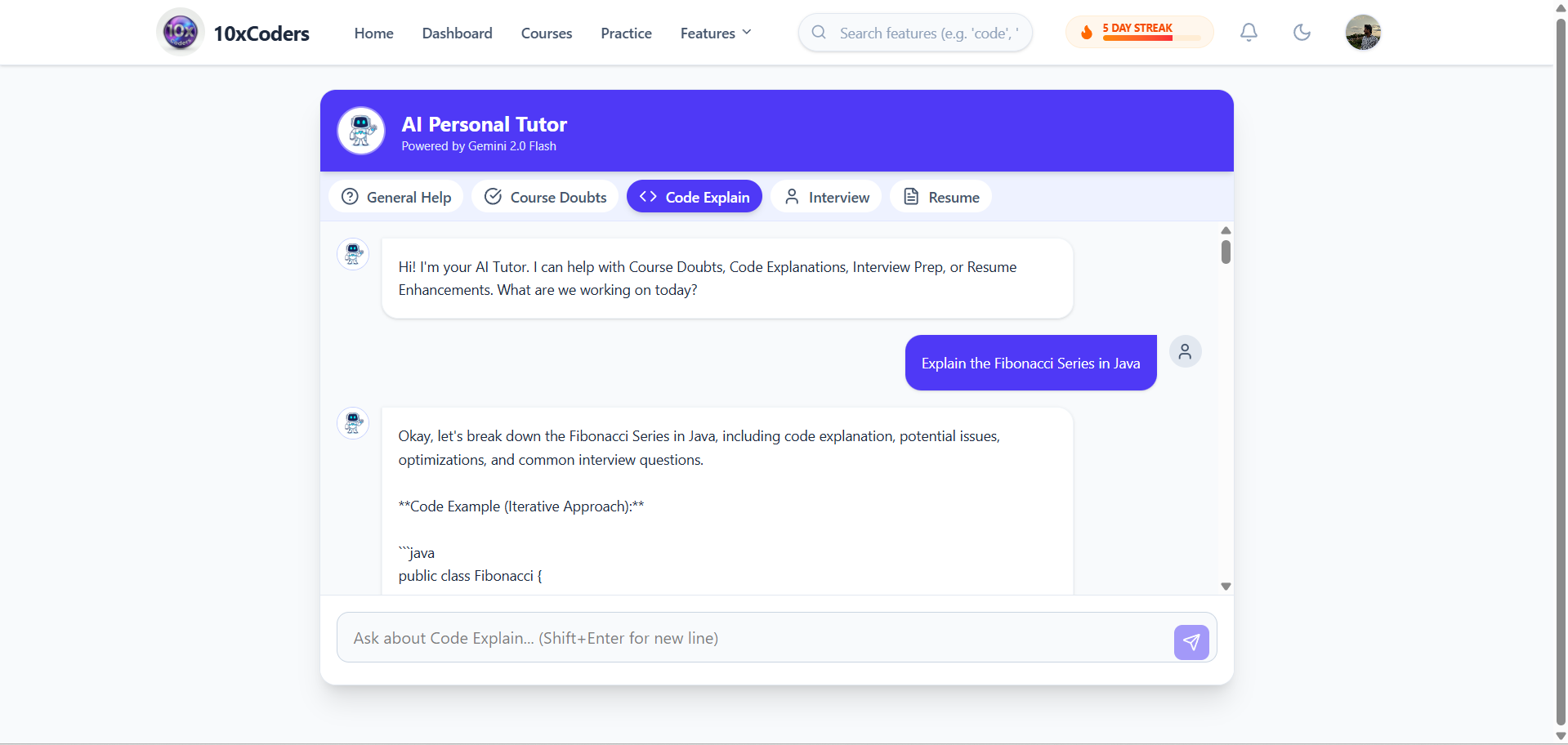 24/7 AI mentor that explains concepts, solves doubts, and provides coding guidance in real-time.