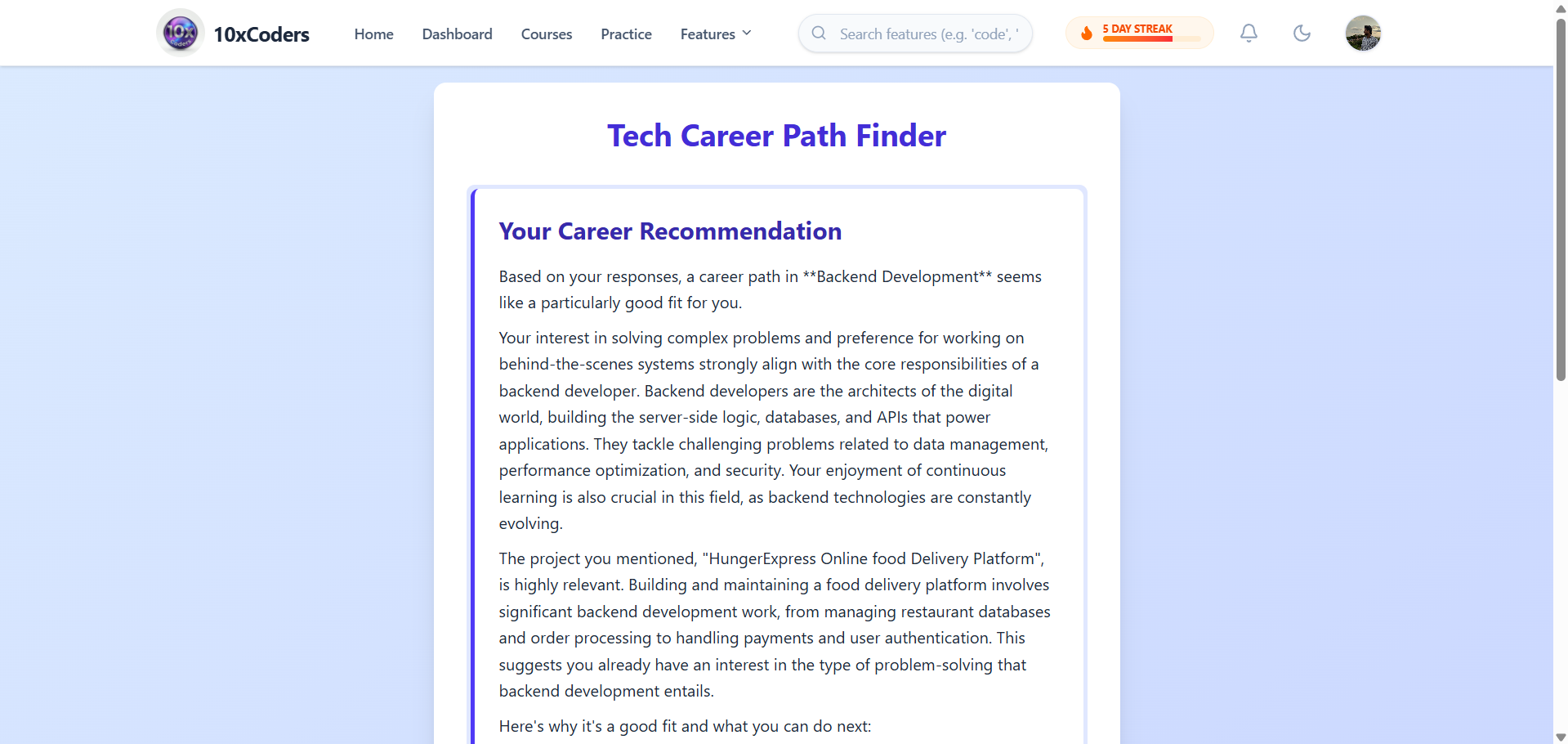 Tech Career Path Finder Result
