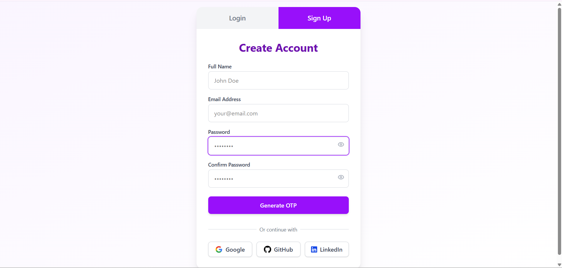 Signup using OAuth2 and Email,Password