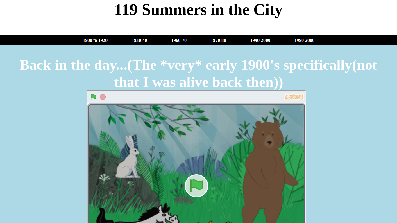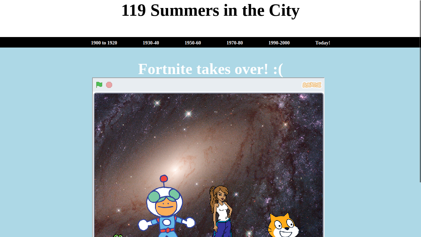 Our project is a website that has Scratch projects embedded in it (one Scratch project per 2 decades) that goes all the way from 1900 to now.