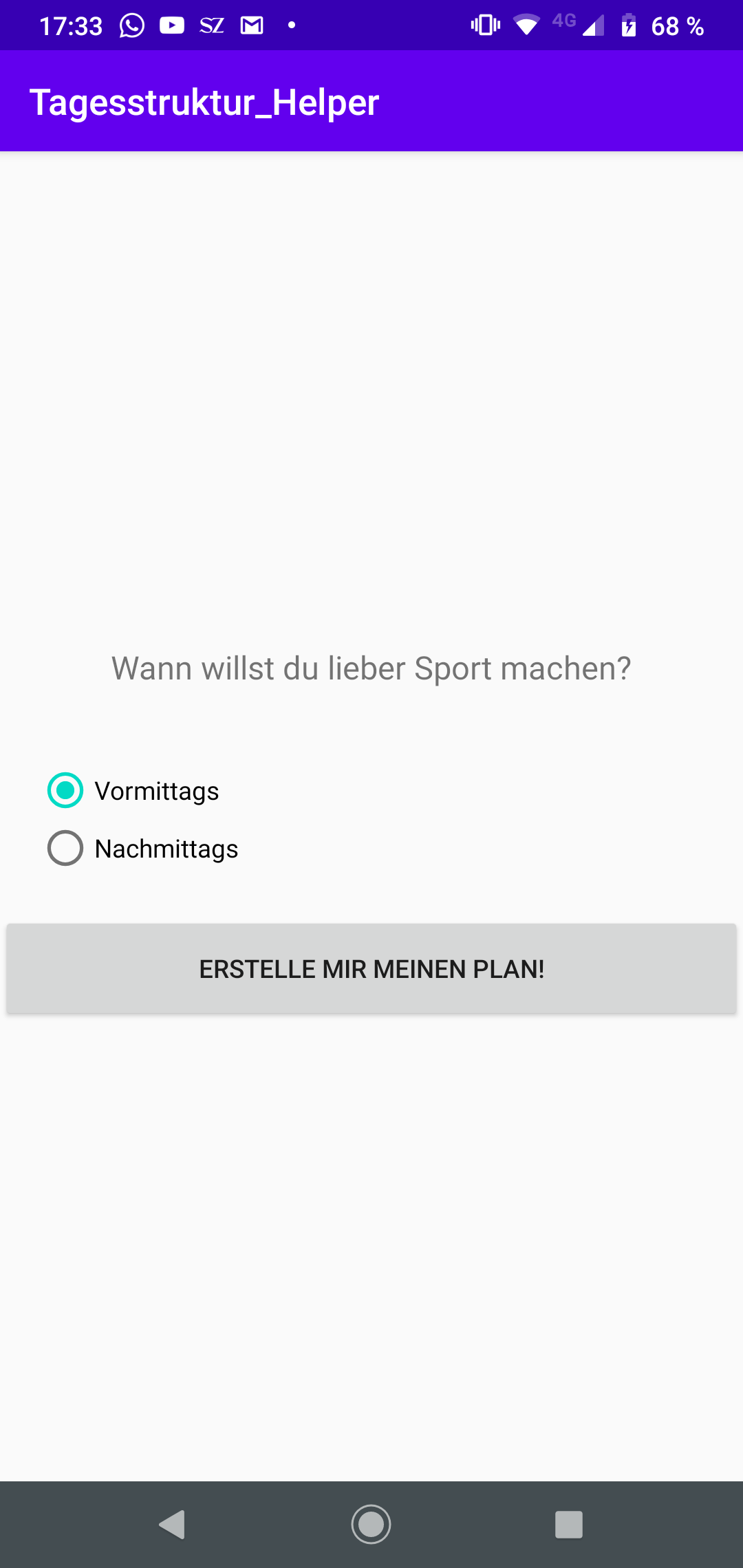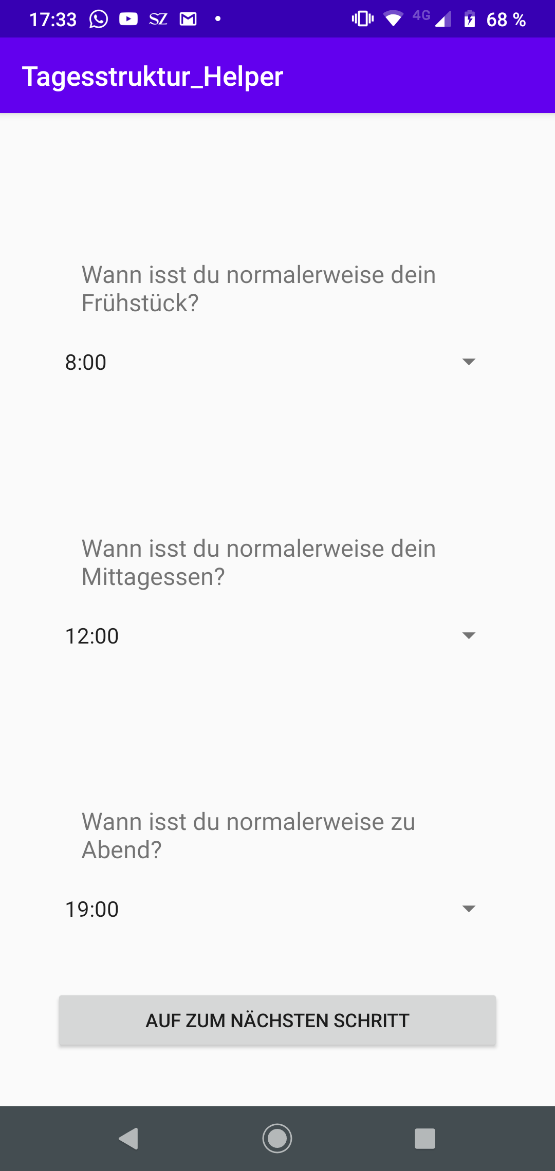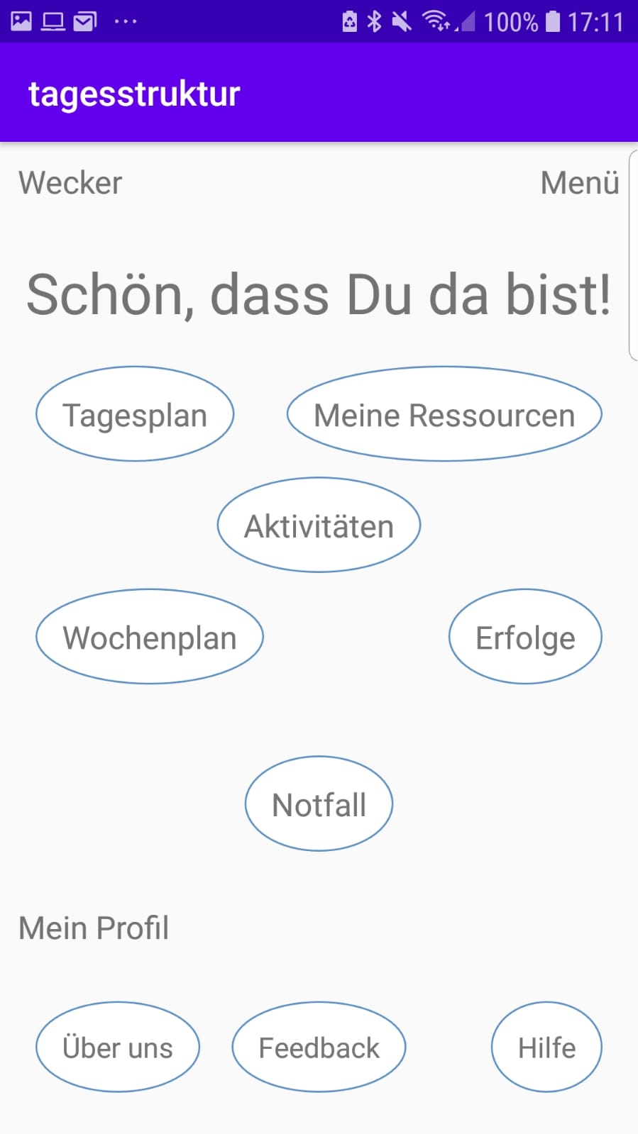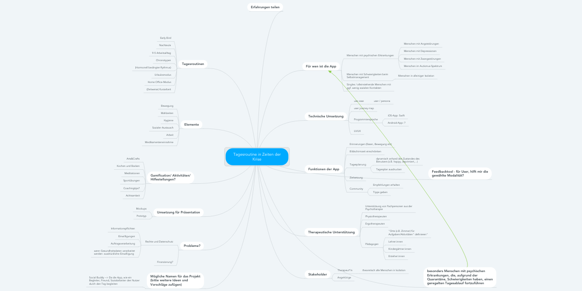 Daily Buddy ist eine App, die auf Basis von Daten, die UserInnen und TherapeutInnen bei der Einstellung angeben, in der Lage ist, einen individuellen Tagesplan zu erstellen und den Tag der NutzerInnen durch Aufgaben, Erinnerungen, Vorschläge und Motivation interaktiv zu begleiten.