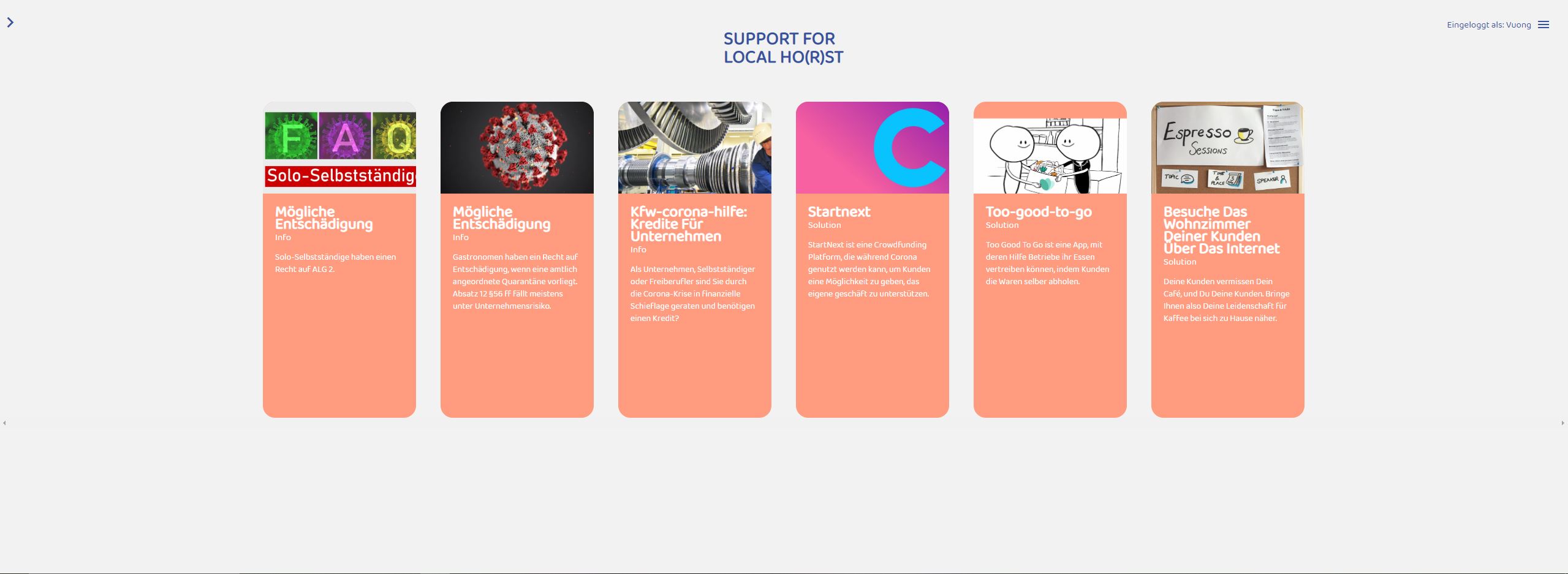 Wir helfen lokalen Kleinunternehmern dabei, die richtige Lösung für ihre Herausforderung während der Corona-Krise zu finden, indem wir eine Online-Informationsplattform bereitstellen.