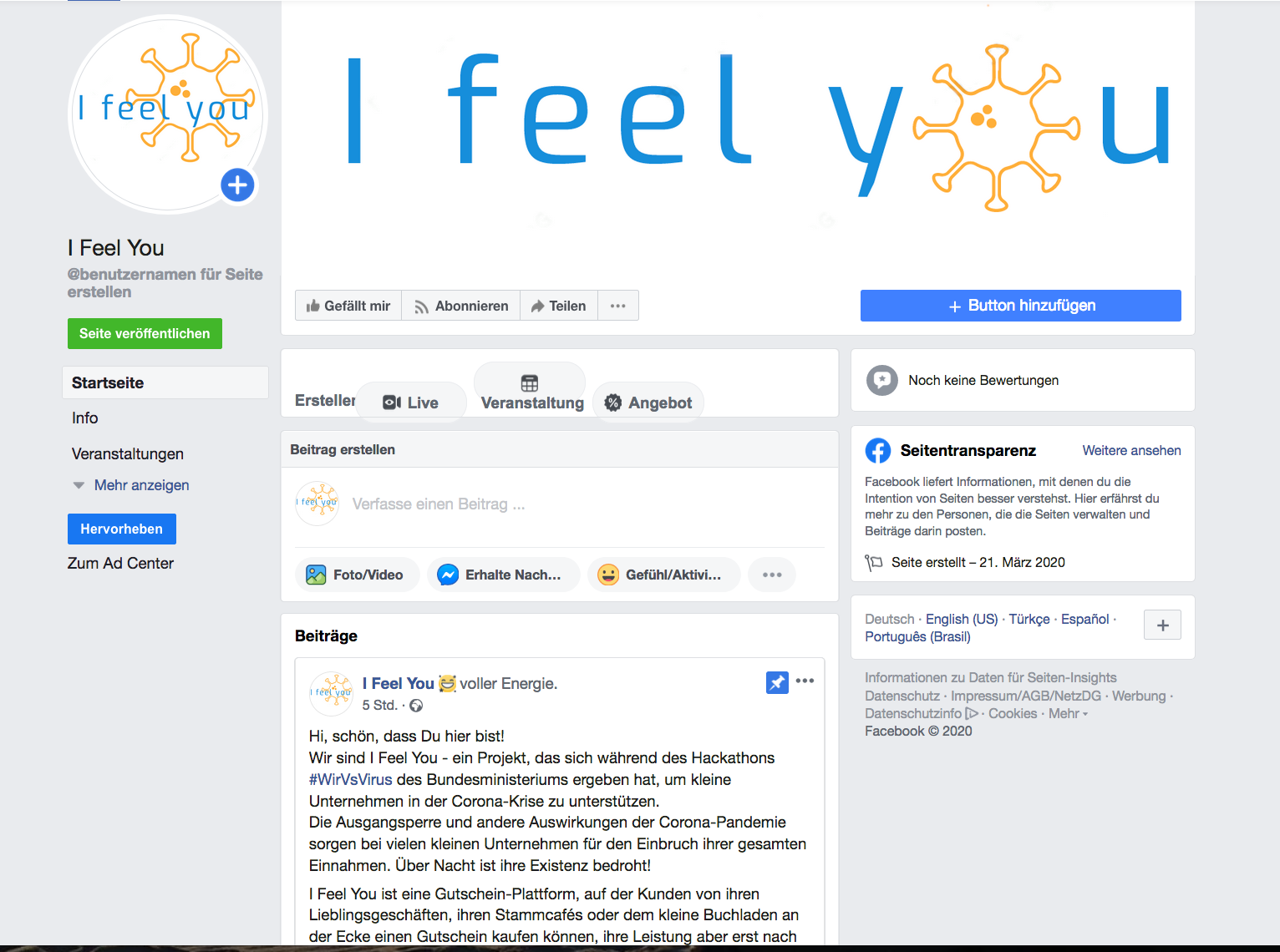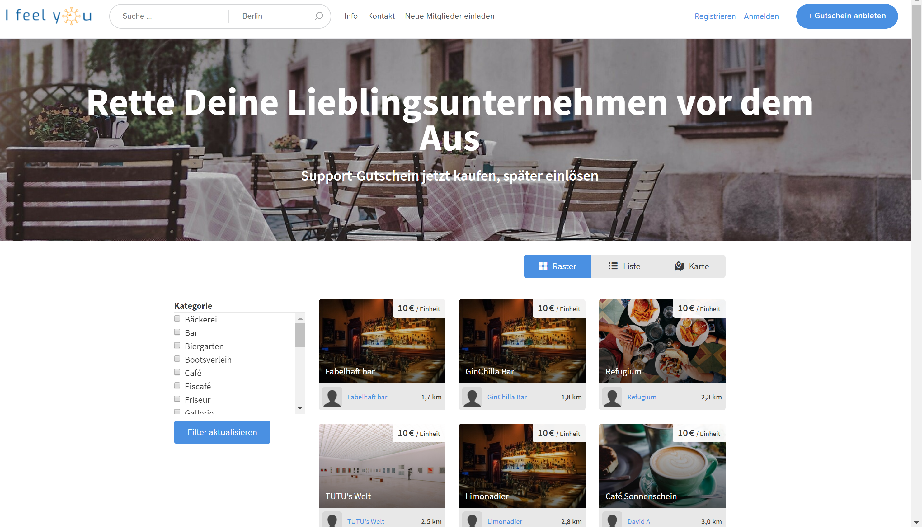I Feel You ist eine Plattform, auf der Kunden von ihren Lieblingsgeschäften Gutscheine für Waren kaufen können, ganz so, als ob sie diese Waren jetzt regulär im Laden kaufen würden. Kleine Unternehmen erhalten so wichtige Einnahmen auch während der Krise, schon ab dem ersten Tag.