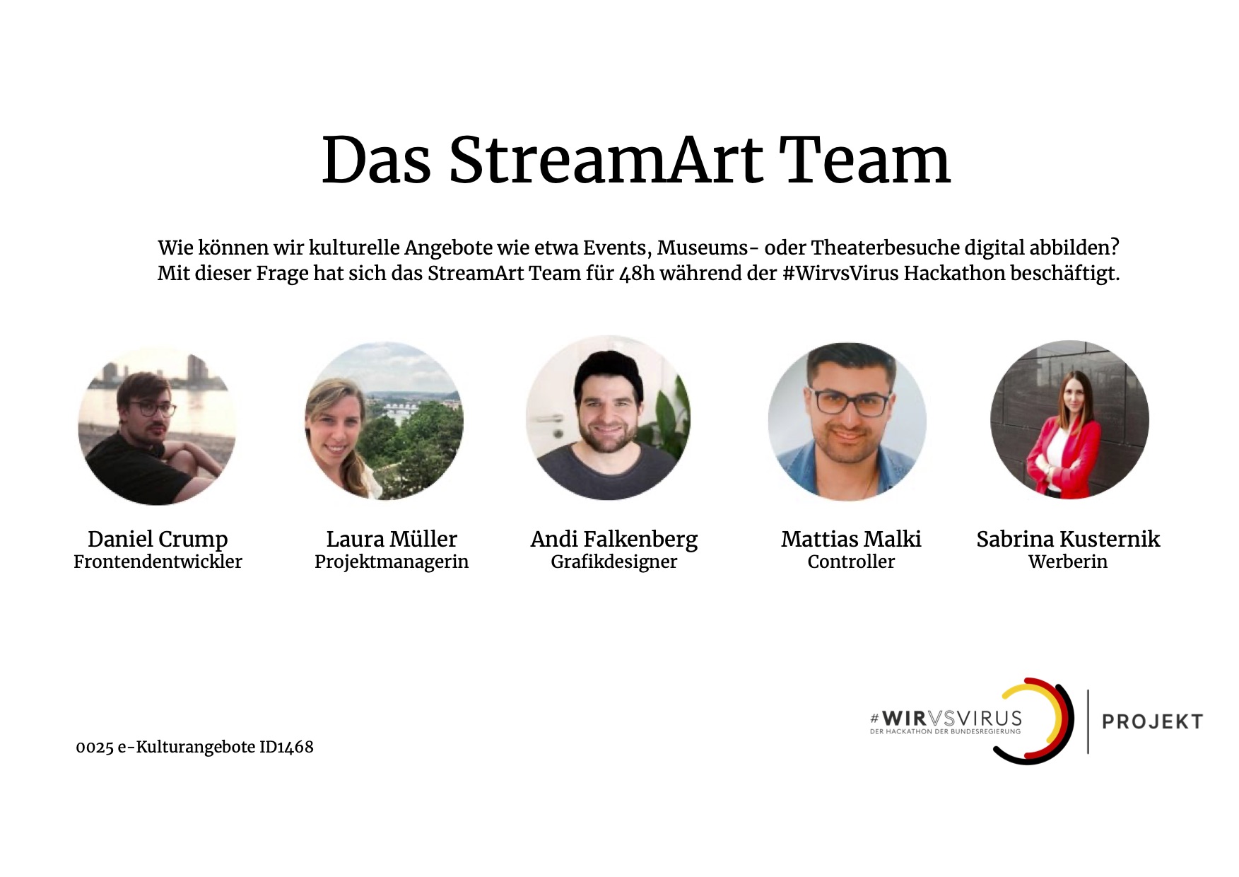 Das Coronavirus hat unser Leben auf den Kopf gestellt. Gerade viele kulturelle Bereiche mussten durch das Versammlungsverbot komplett eingestellt werden. Mehrere tausend Veranstaltungen mussten bereits abgesagt werden. Musiker*innen, Kleinkünstler*innen, Schauspieler*innen, bildende Künstler*innen - alle beklagen finanzielle Einbußen. Organisierte Fördermittel sind momentan schwer zu bekommen. Mit kreativen und schnell umsetzbaren Lösungen können bestimmte Bereiche online existieren. Konzerte, Theater, Comedy, Vorträge, Performances und Ausstellungen könnten auch digital zugänglich gemacht werden. Hier kommt StreamArt ins Spiel.