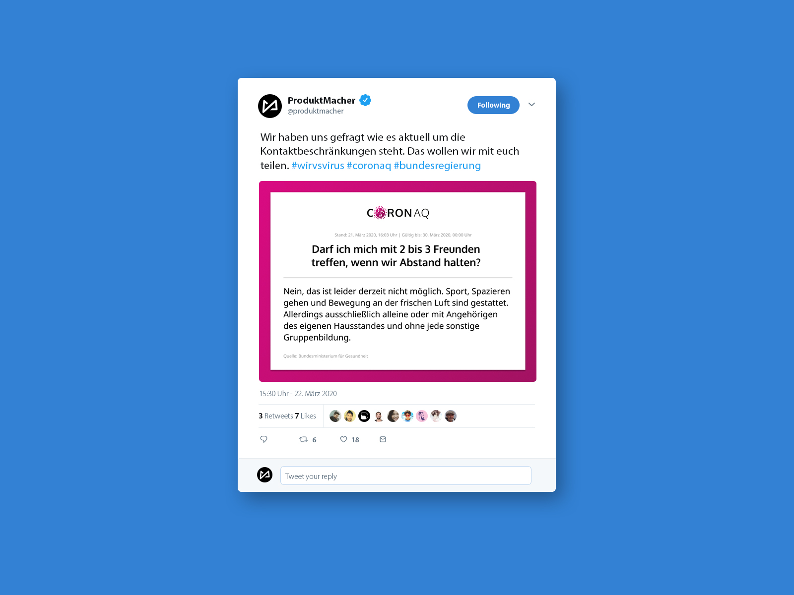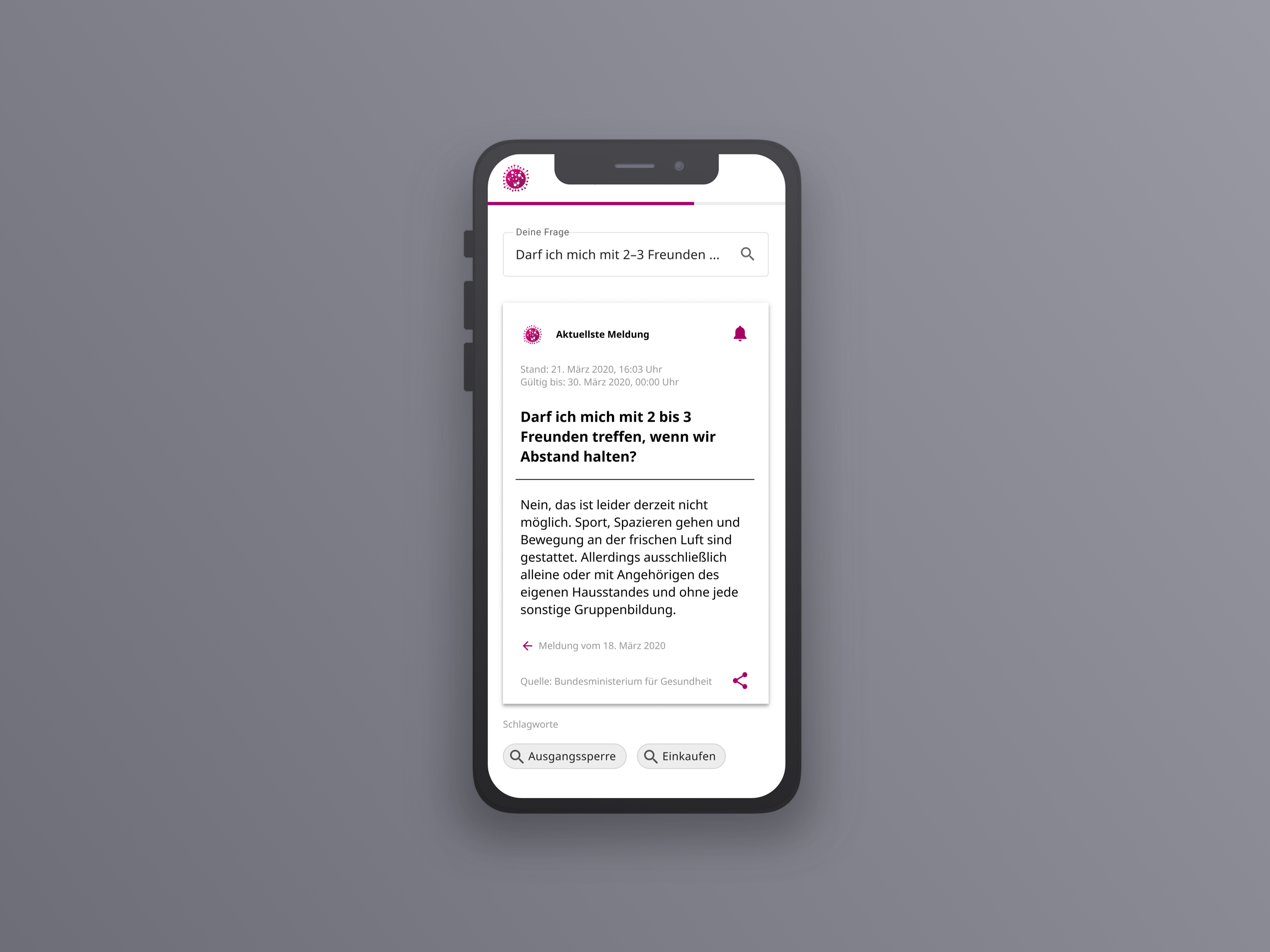 Durch die Sicherstellung geprüfter Inhalte, sowie der Zentralisierung aller relevanten Informationen rund um das Coronavirus beugen wir zudem der Übermittlung von Falschmeldungen und der Verbreitung von Gerüchten vor.