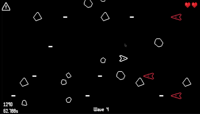 My project is a bullet hell/shooter game, you control a spaceship using WASD and can dodge and shoot using O and P. You are faced with swarms of asteroids and enemy spaceships that will fire at you, making you lose hearts if you get hit by anything. Shooting down asteroids and enemies will give you points. The game runs on a wave-based system, becoming harder after each wave. The game ends when you lose 5 hearts or beat wave 10.