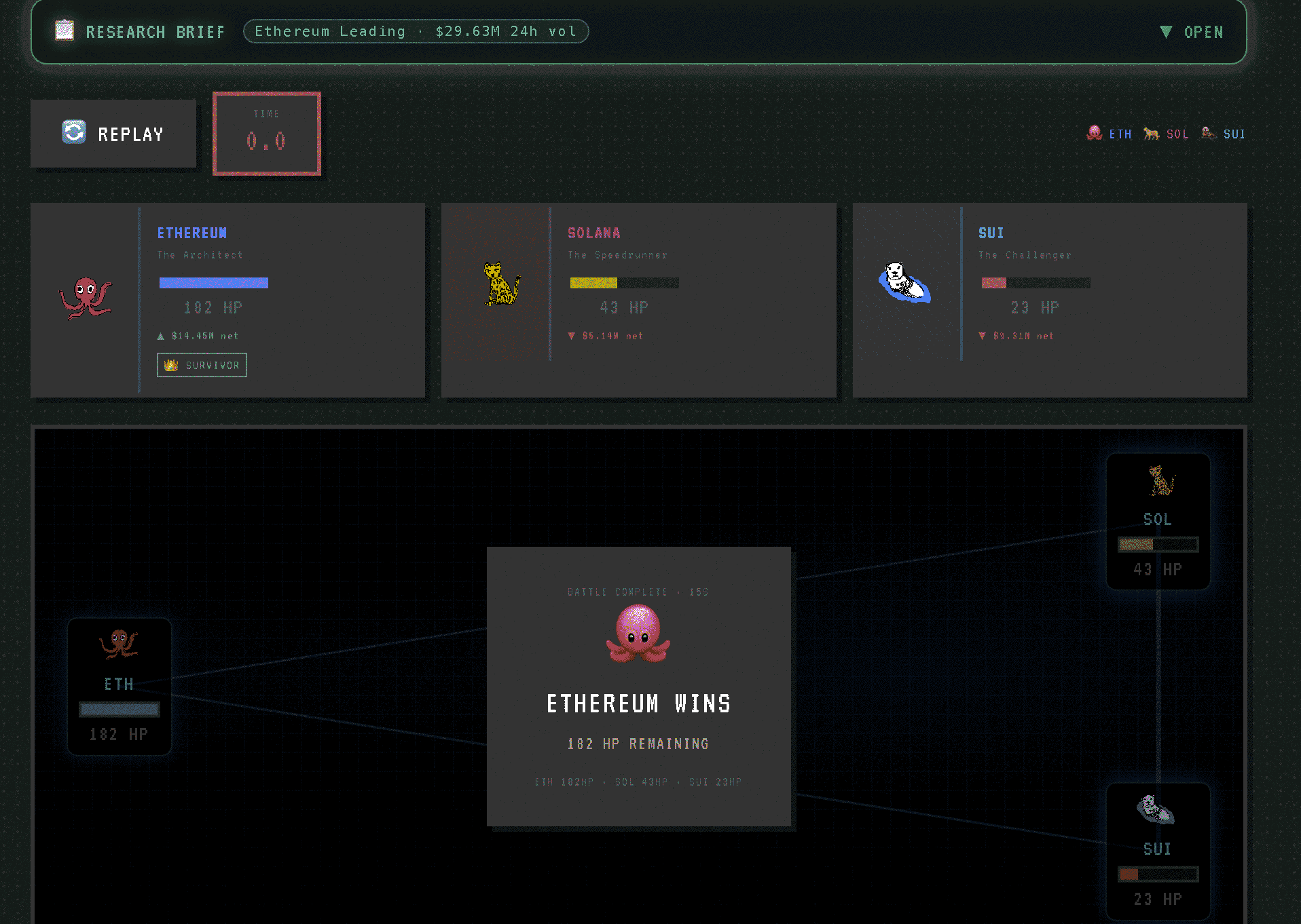 Turns real Allium on-chain data into playable pixel-art games. Gorillas march when Bitcoin leaves exchanges. Animals race based on 24h price. Chains battle with real bridge volume as HP. Flip a switch the same data, clean chart. Play in Sandbox mode, corrupt the data, share the result.