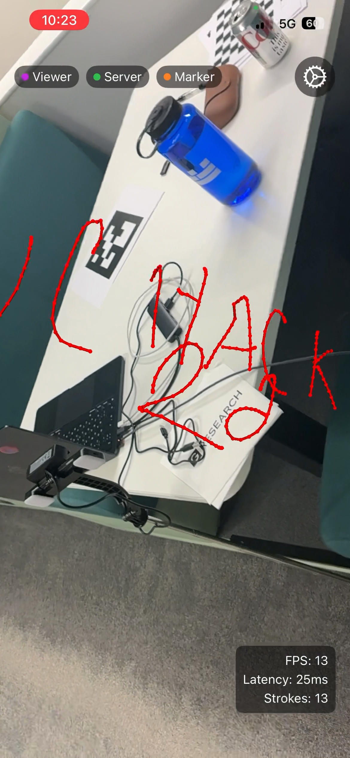Meta glasses were too inaccurate. Had to pivot. Ceiling-mounted camera was impractical. Calibration is brutal. Millimeters matter. Jitter and instability made drawings look like earthquakes. Spent hours fighting coordinate system mismatches between Mac and iPhone.