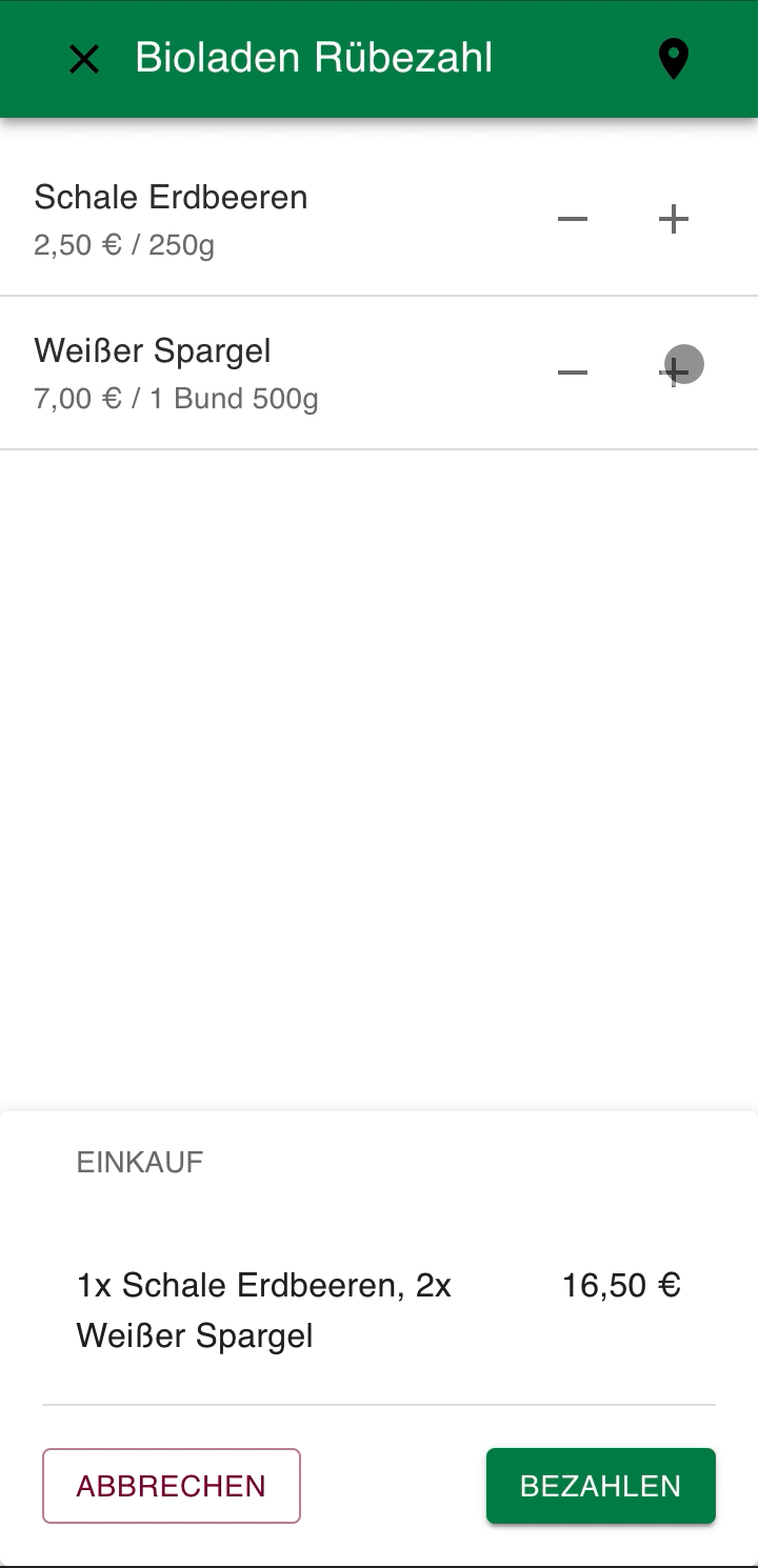 Wir wollen eine zentrale Plattform zum Vertrieb von regionalem Obst und Gemüse schaffen. Landwirte sollen die Chance bekommen einfach und autark Waren frisch vom Feld anzubieten und dafür kontaktlos und sicher bezahlt werden.