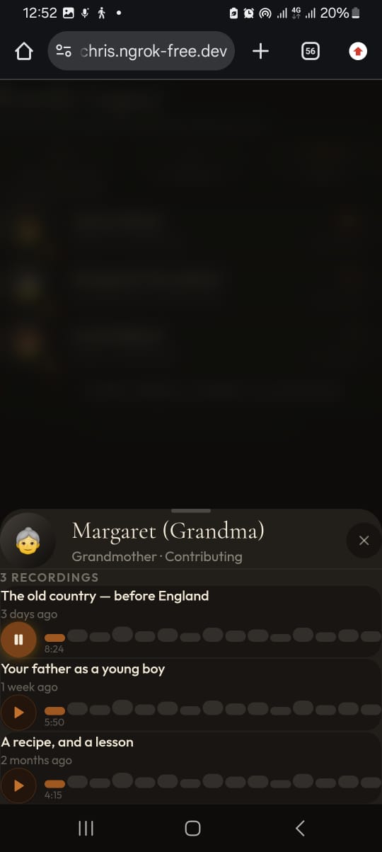 - A real-time voice companion they can talk to naturally, ask about Dad's childhood, hear Grandma answer in her own words, grounded in her actual recordings via Vertex AI RAG