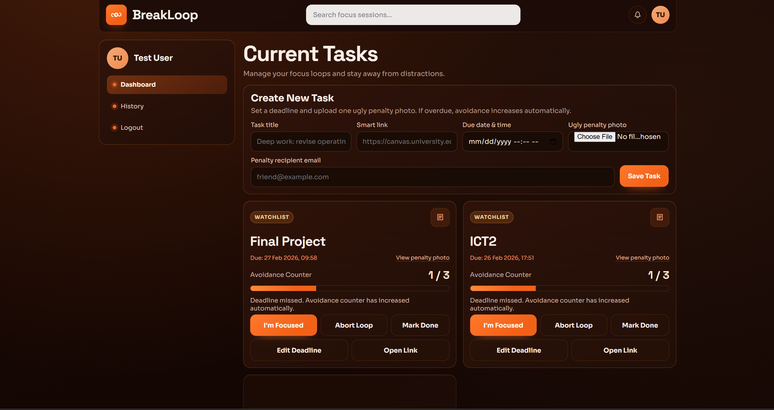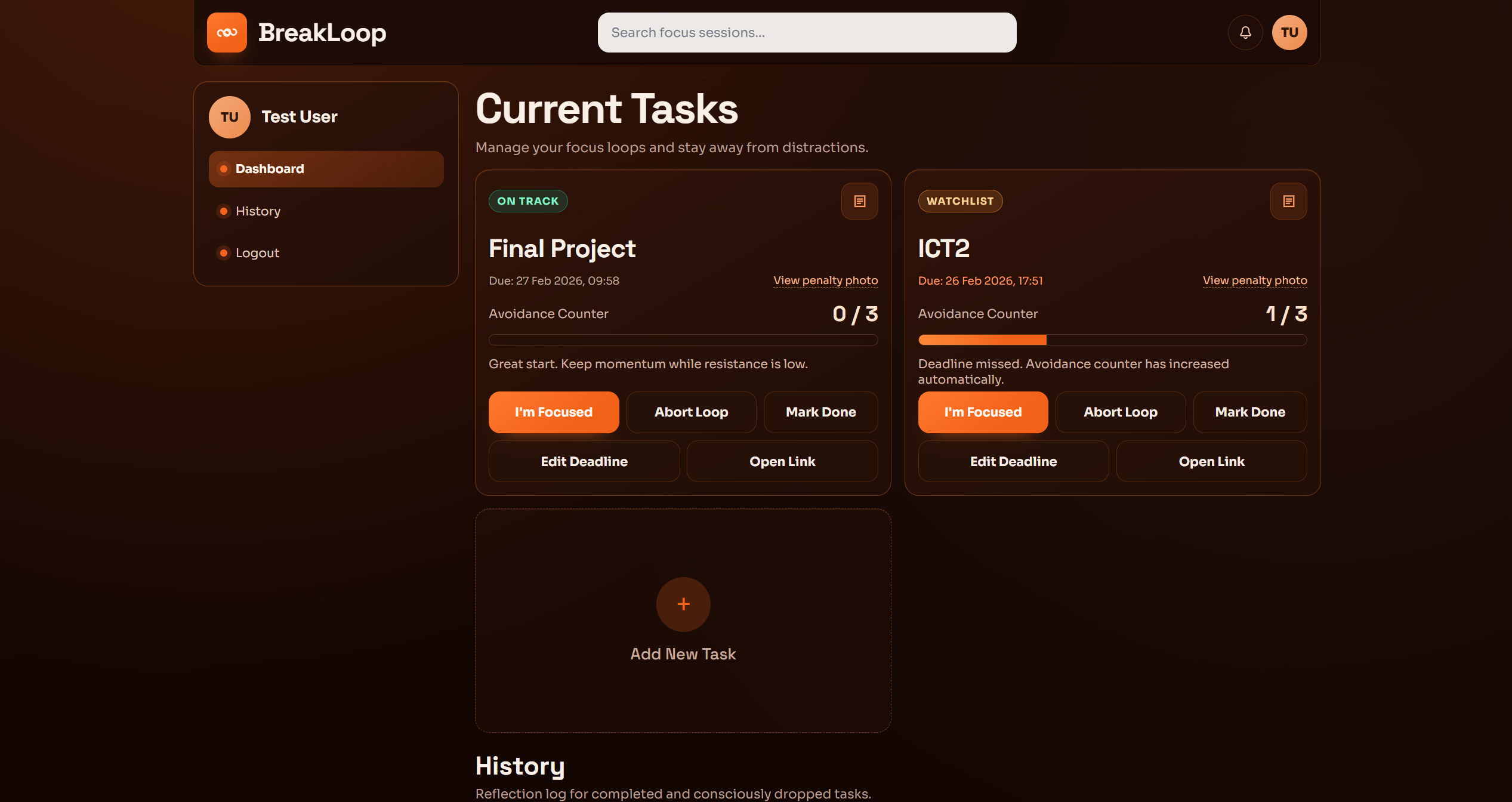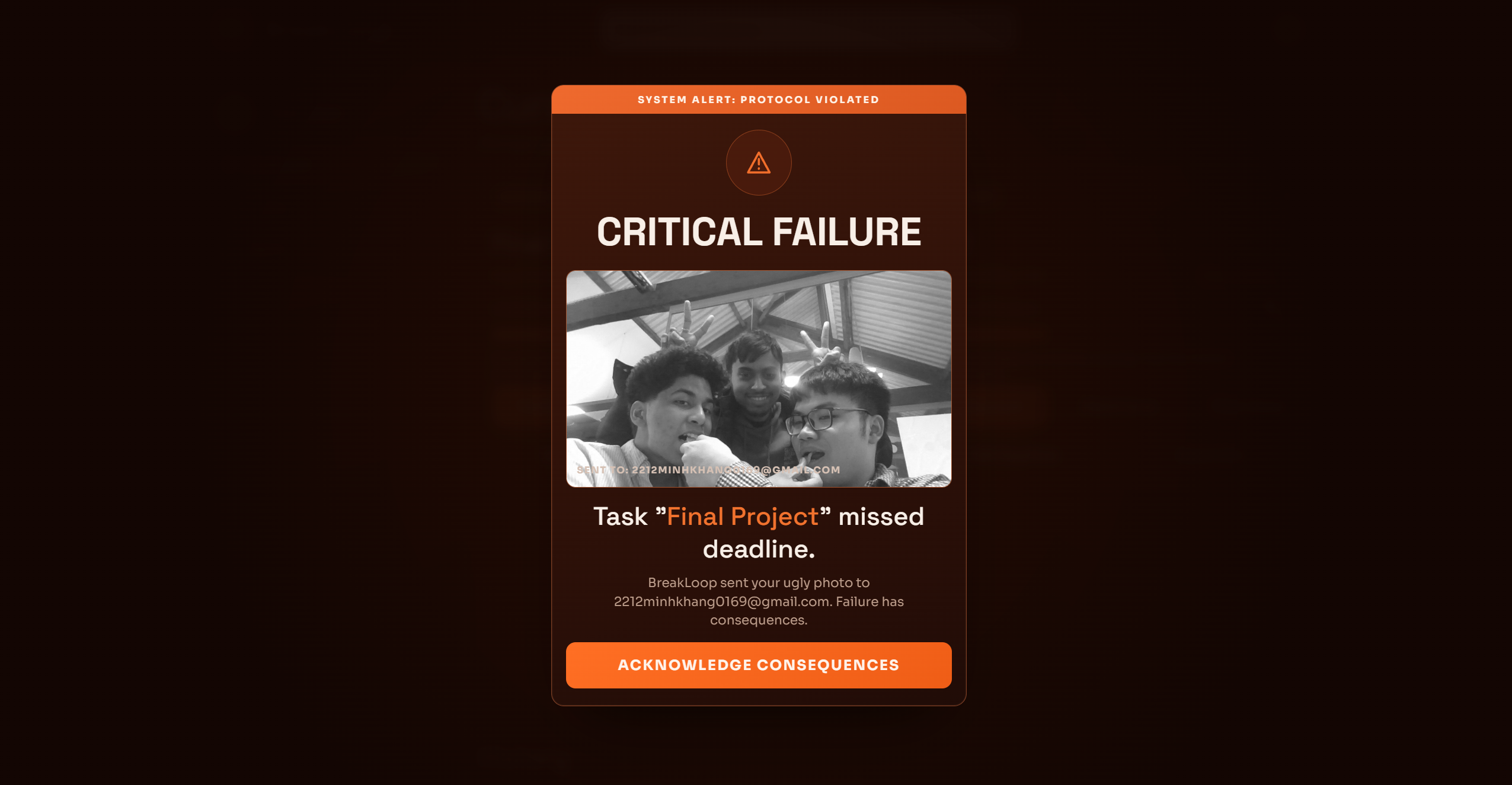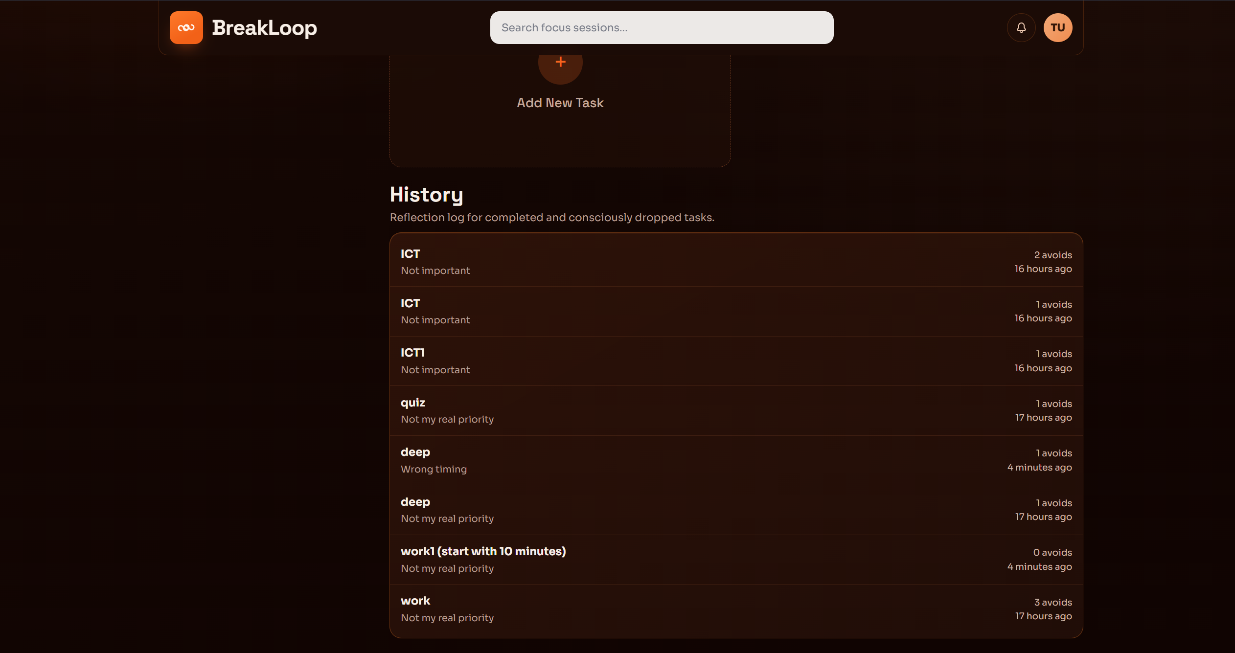 Instead of rewarding productivity, BreakLoop detects repeated task avoidance and intervenes before procrastination becomes a habit.