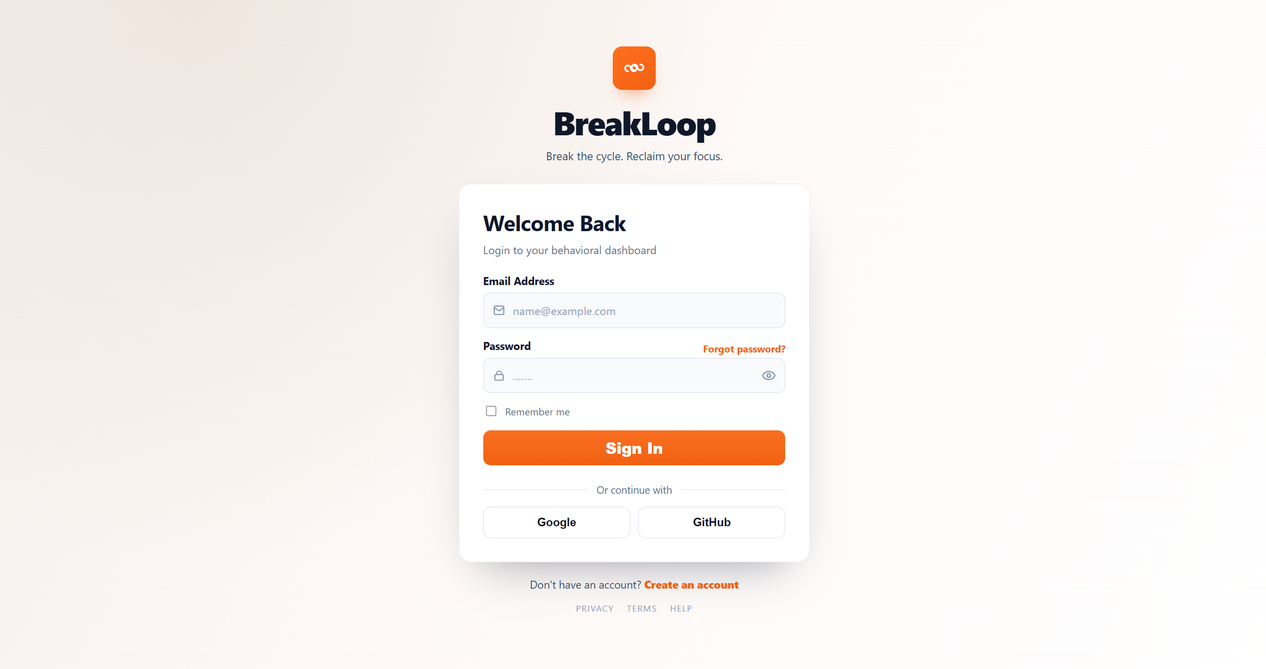 BreakLoop is a behavioural intervention web application built for HudHack26 – “Break The Loop”.