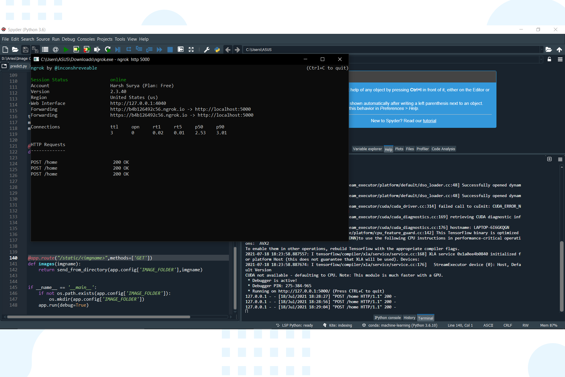 We used Flask to create our very own custom APIs to access our AI models and hosted them on a server using ngrok.