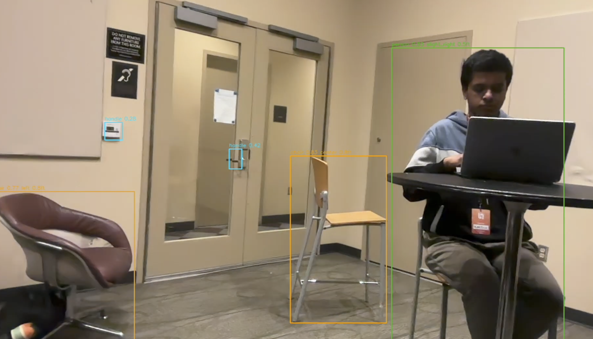 - Door Detection: YOLOv8 fine-tuned on the DoorDetect dataset for door and handle localization