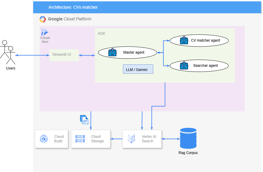 - The agent matcher is able to find and suggest fast the best CVs that the HR expert could start taking a look with the reasons and why it discards the others (without reading the all huge of resumes)