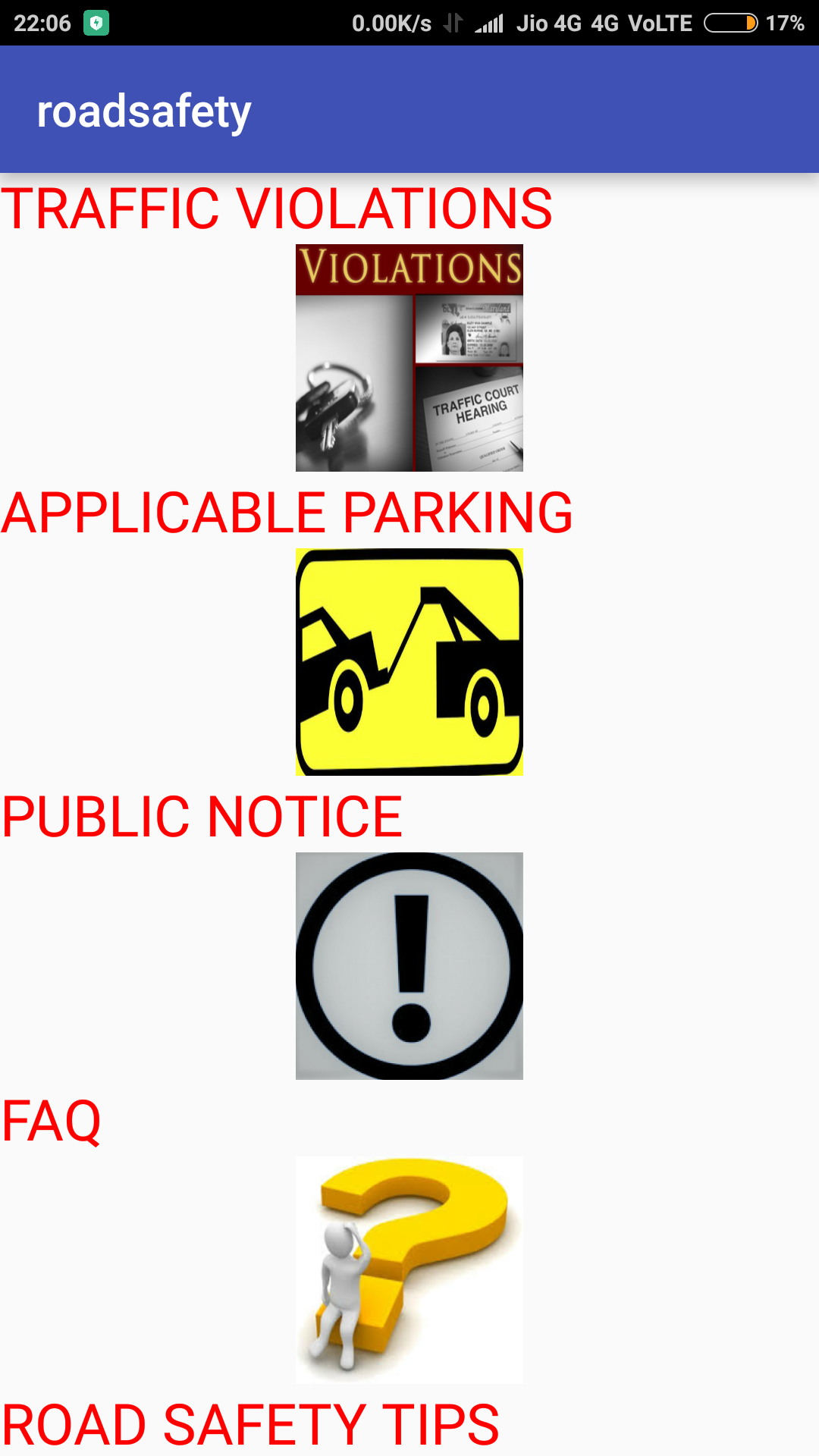 Anyone can find which roads are blocked for road repairs or public events. One can see what are the different traffic rules and how much is the fine for a particular offence. For any proposed changes in the traffic plan in your locality, one can send their opinions and suggestions online. One can contact numbers for senior traffic officials in case of emergency, report accidents and recieve quick police assistance.