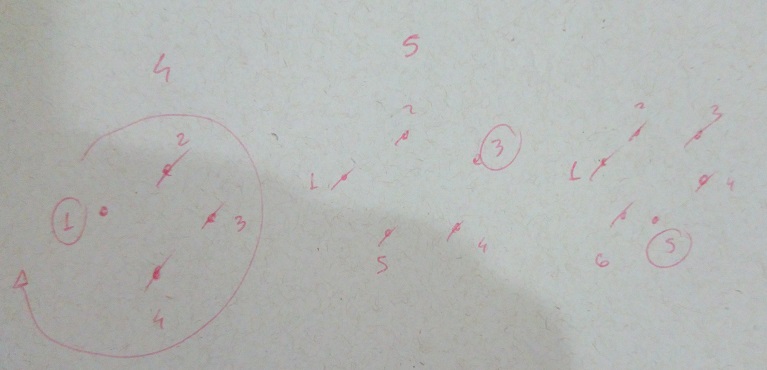 - In a circle of 3 persons, the winner is the 3rd person, since we removed the 2nd person on the first iteration, and the 1st person on the second iteration. Something interesting that happens on this case is that, once we remove the 2nd person, this problem falls back to the problem with 2 persons in the circle. Therefore, in this "new" setup, the 1st person (that is actually the 3rd) should be the winner, according to the previous analysis, and that is exactly what happens.