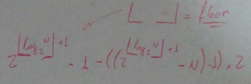 Something that is good to know is that, if you have a table with the powers of two numbers, the formula is way easier since you can switch 2^(a) with the power of two that predates N (represented by ANT on the formula), and resolve it with basic operations!!!