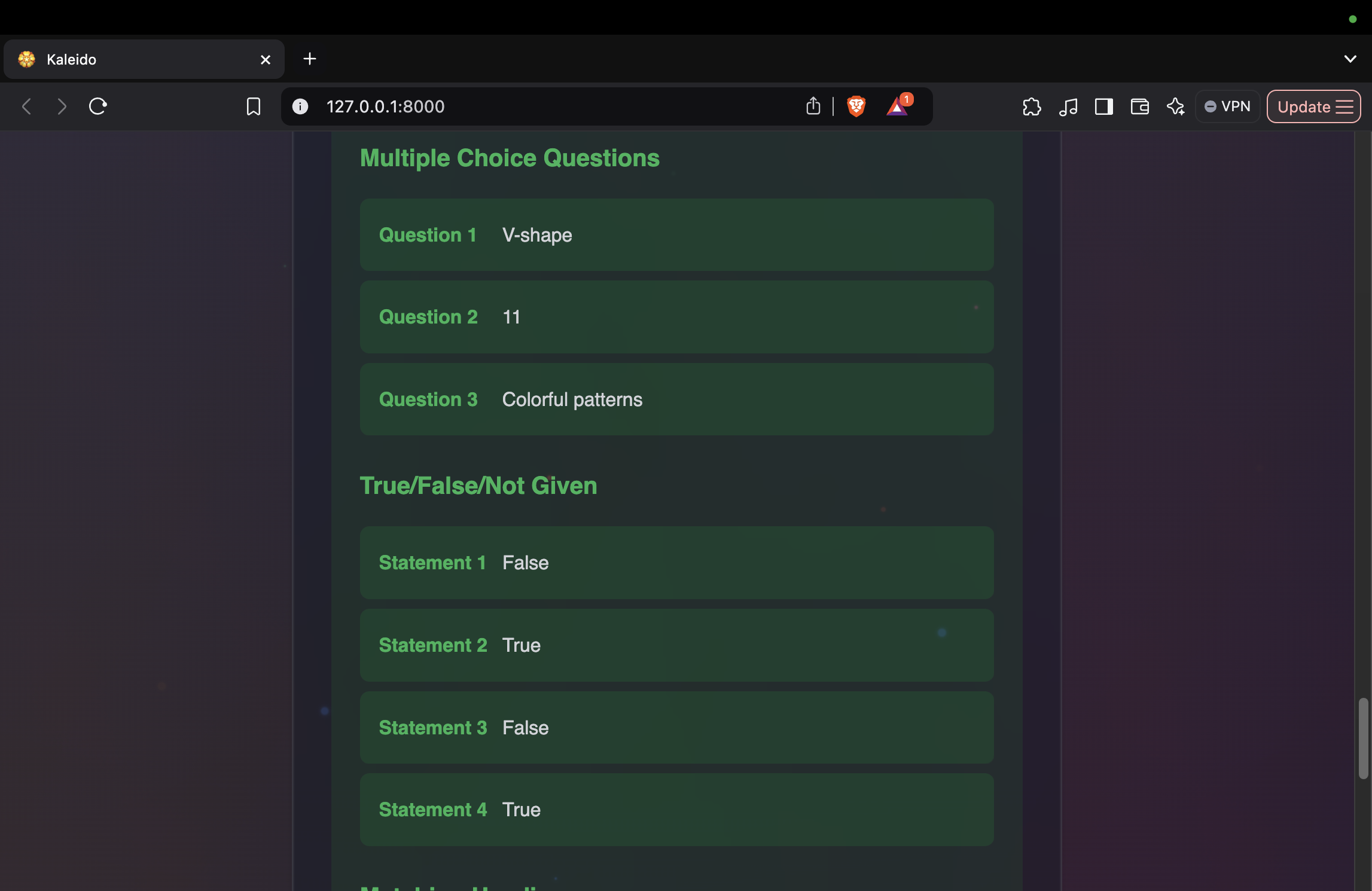 Kaleido represents my vision for the future of language learning—one where education adapts to the learner's interests rather than the other way around. The current version is just the beginning. I envision enhancing the platform with:
