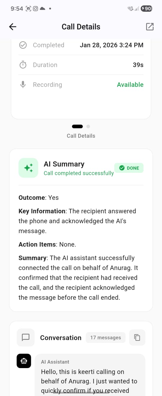 AI Phone is a full-stack mobile application that delegates phone calls to an intelligent AI agent. At its core, it offers: