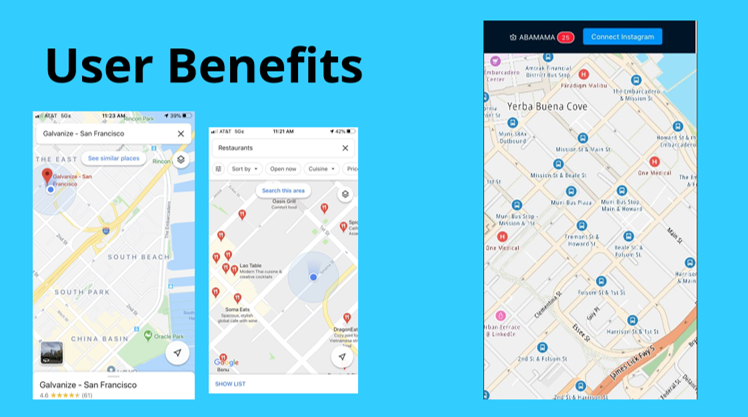We are offering travel lovers and Foodies Customized Recommendation when they arrive at destination or while they're passing through must visit spots using Computer Vision, Machine Learning, Deeply Relevant Recommendations, GPS, Real-Time Location. For Local Business owners and SMEs, we offer a way to boost their business from tourists and connect them to potential customers who are willing to explore personalized and relevant recommendations suggested throught the app.
