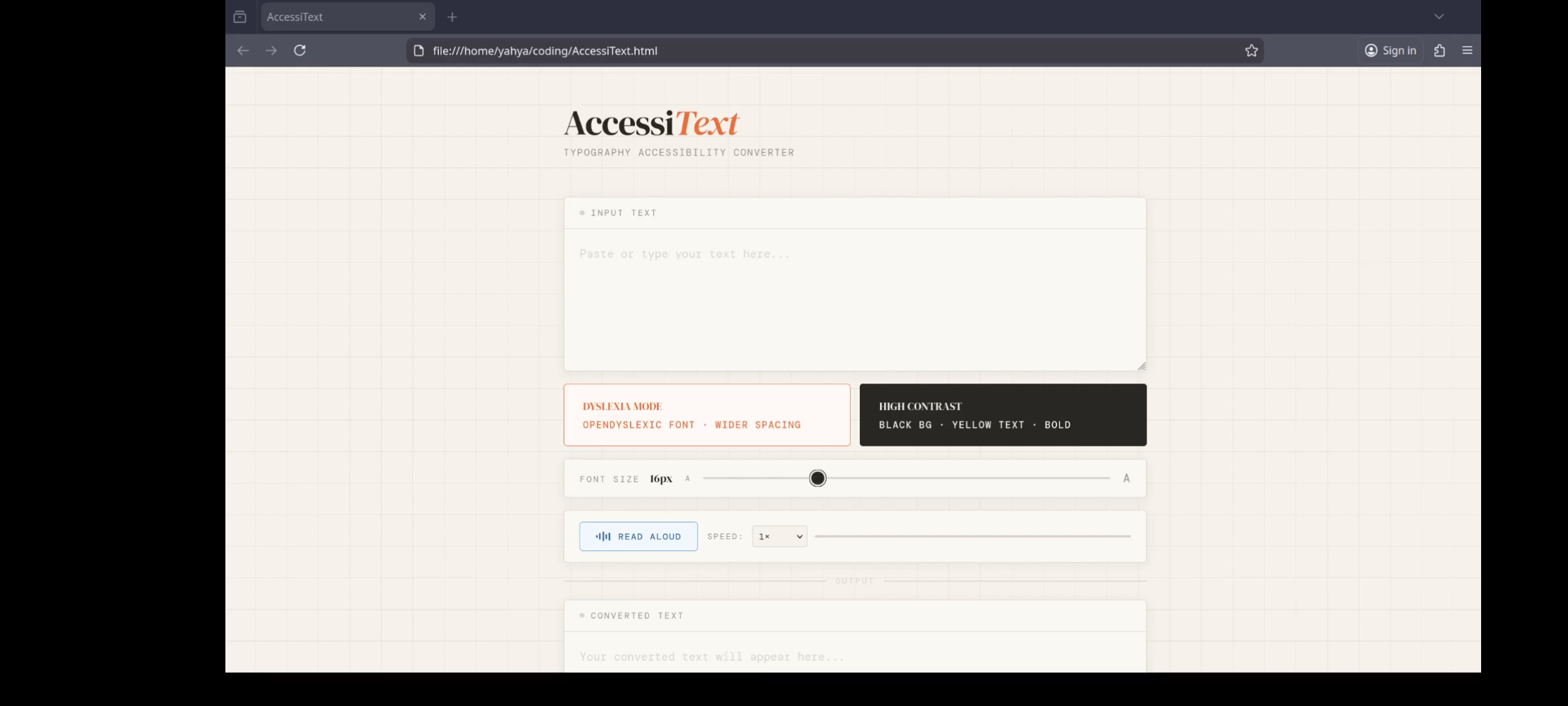 it basically applies css styles(Dyslexia, high contrast, font size) to the text the user wants to read more comfortably , and provides an option for the text to be read by web speech api