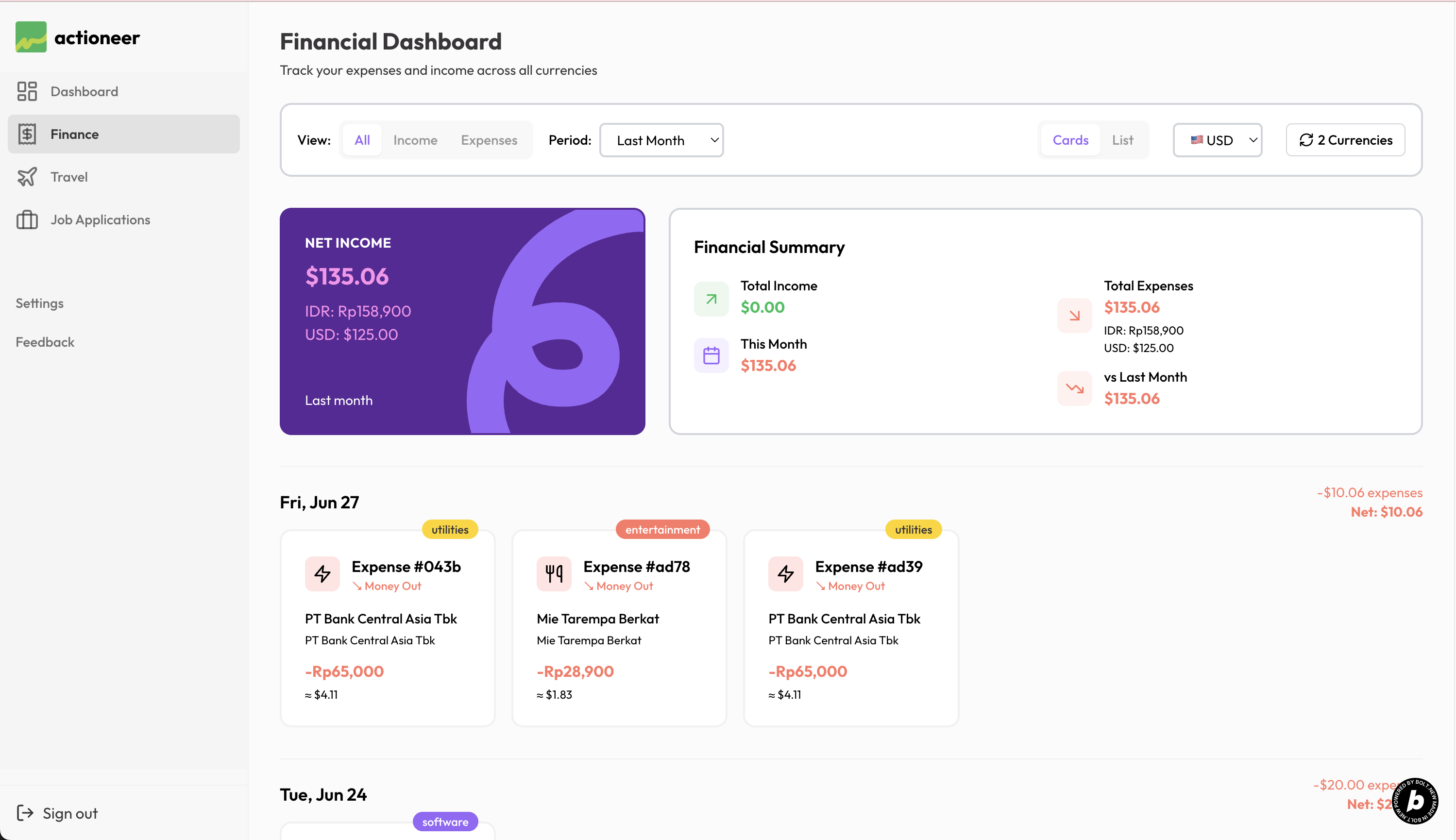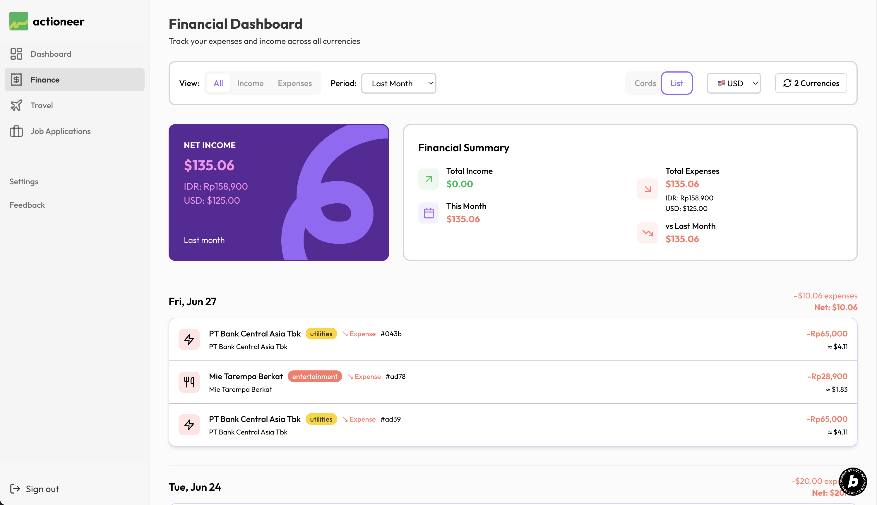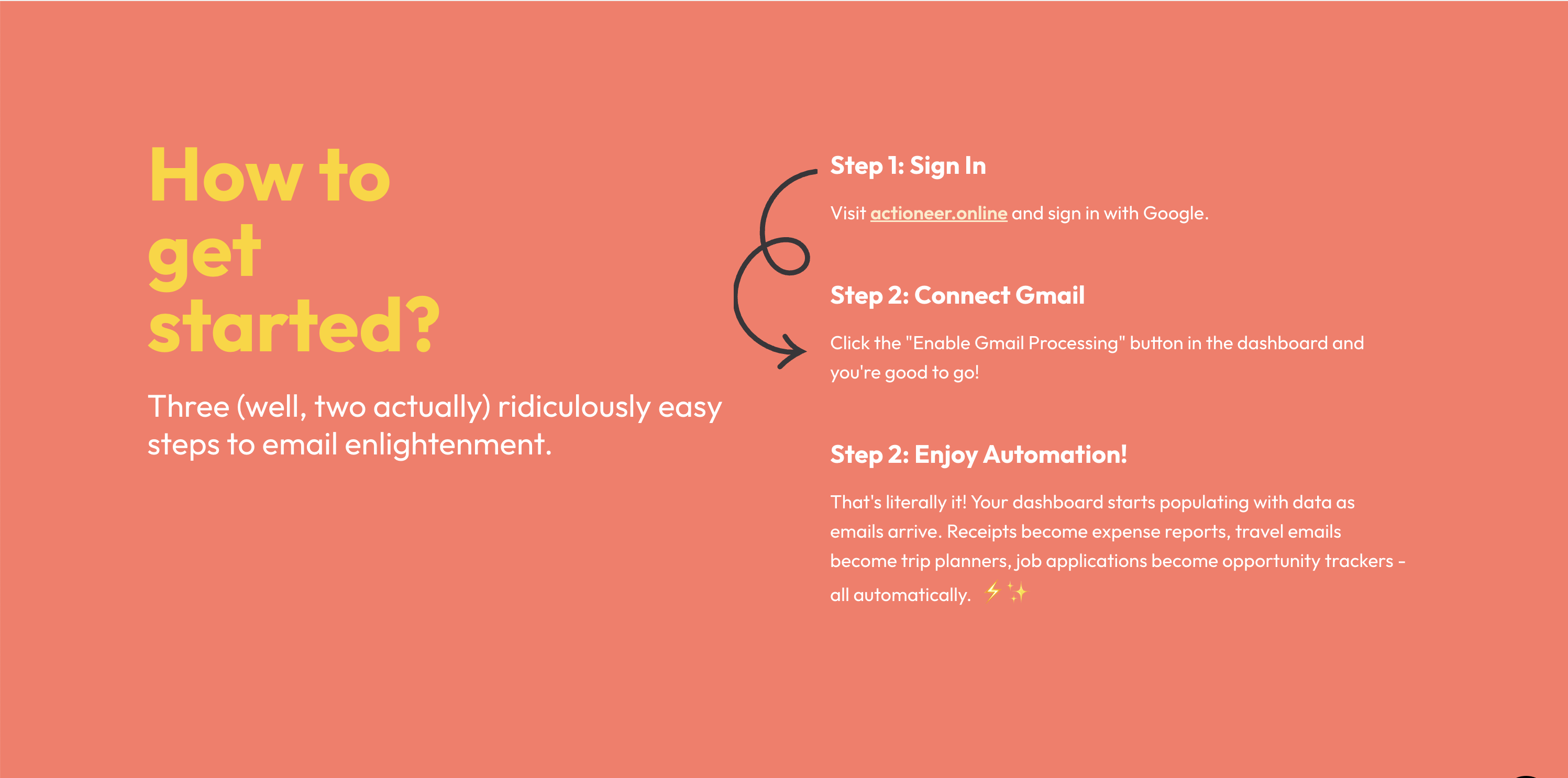 The inspiration came from everyday frustrations we all face. I just like to note down expenses and incomes, but it won't last long as I sometimes don't have enough time or am too lazy to pull up note-taking apps. I also felt the struggle for job seekers who tend to just get away with job status emails and end up putting everything all over the place, making it hard to track which employers are calling for interviews. The lightbulb moment was realizing all this valuable data already exists in our Gmail - we just needed a smart way to extract and organize it automatically without even lifting our fingers, it's just there working it off for you. This is the biggest selling-point from Actioneer - once installed, simply forget it.