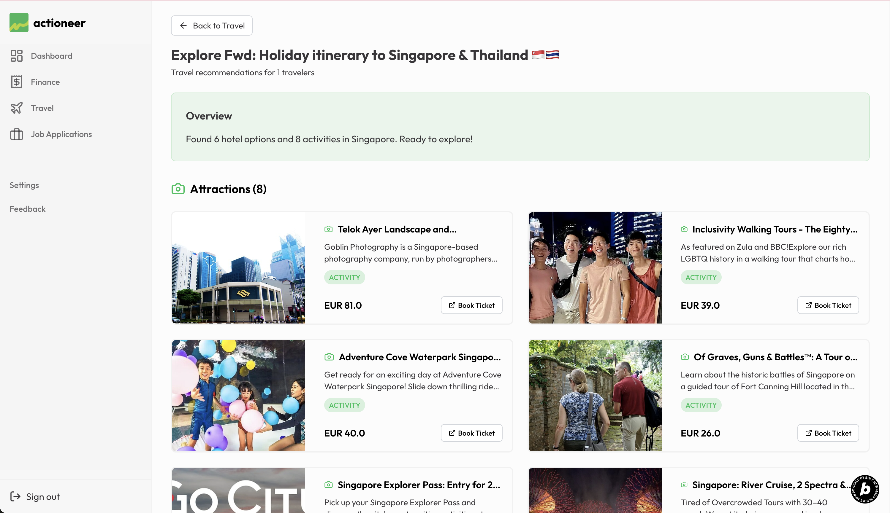 Actioneer automatically monitors your Gmail inbox and transforms incoming emails into organized, actionable insights. It captures receipts for expense tracking, travel promotional emails for destination planning, and job applications for career management - all without any manual work. Think of it as having a smart assistant that sorts the wheat from the chaff in your inbox 24/7.