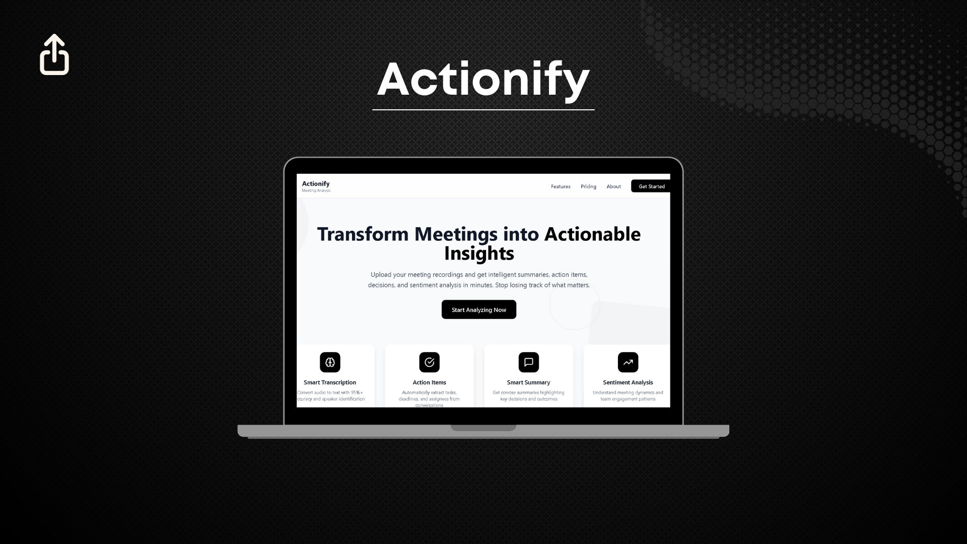 Actionify is an AI-powered web application that streamlines meeting analysis. Key features include: