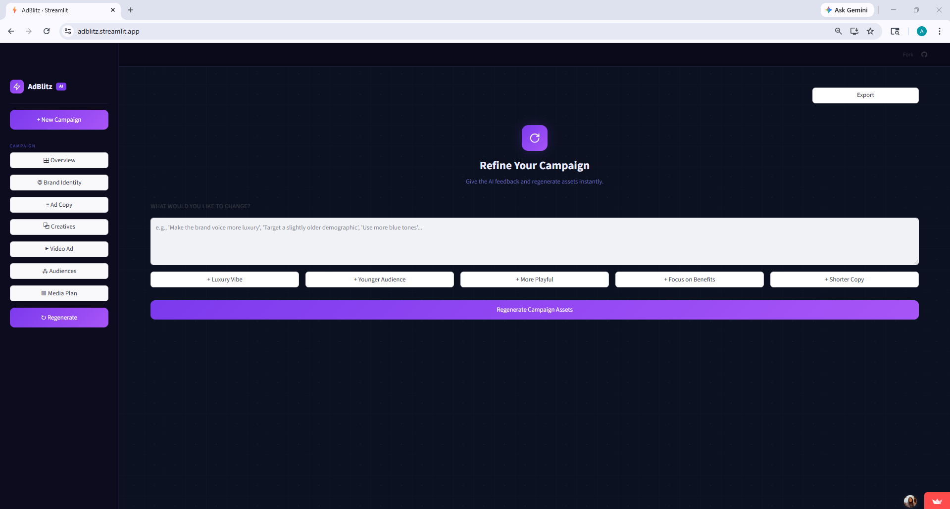 We see AdBlitz evolving into a full marketing co-pilot. Here's where we'd take it: