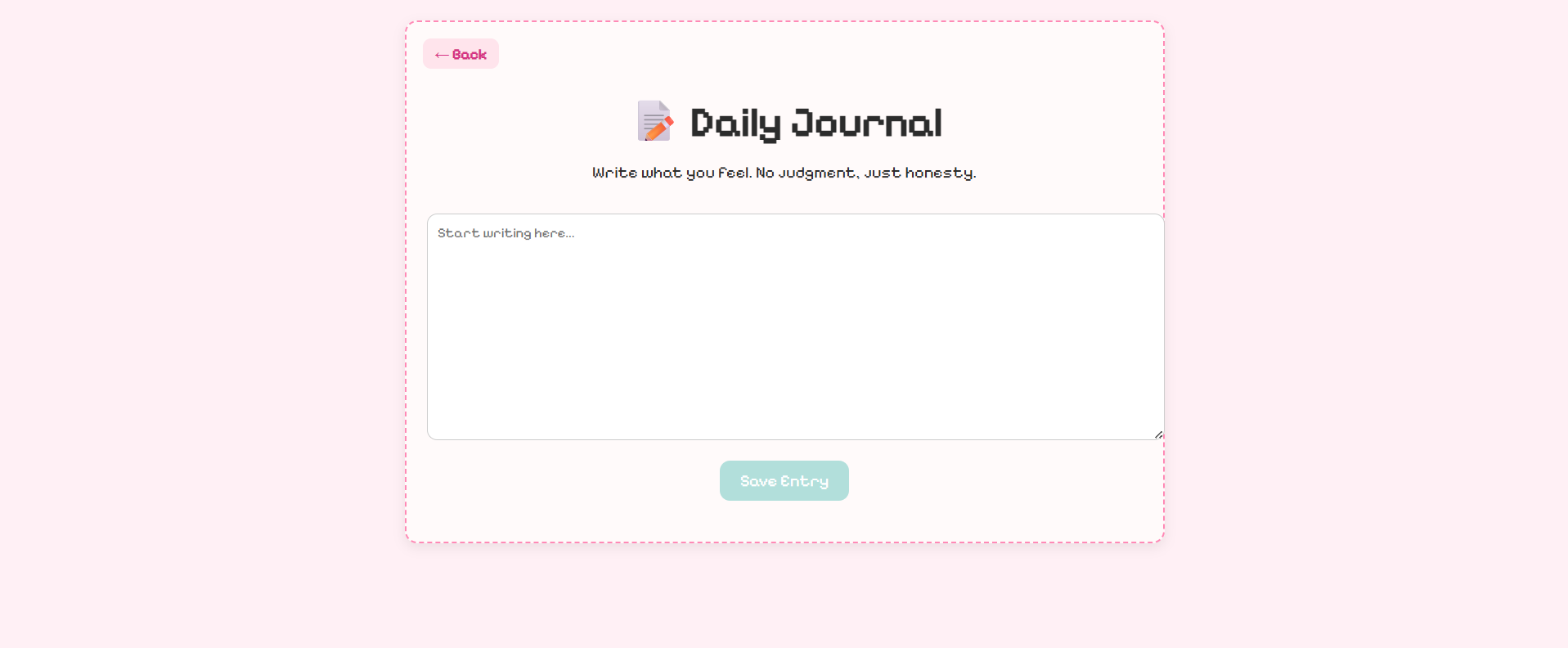 - Local Storage: Saves user mood and journal data locally — no account needed