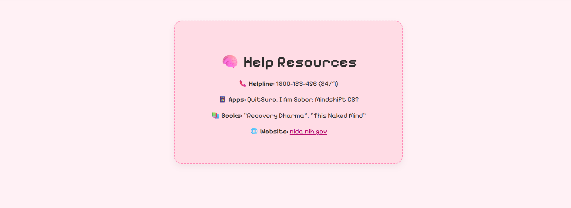 SafeSpace is a soft, pixelated corner of the internet designed for anyone beginning their journey away from alcohol or drug dependence. It’s weird, gentle, gamified, and made to feel like a digital hug in 8-bit form.