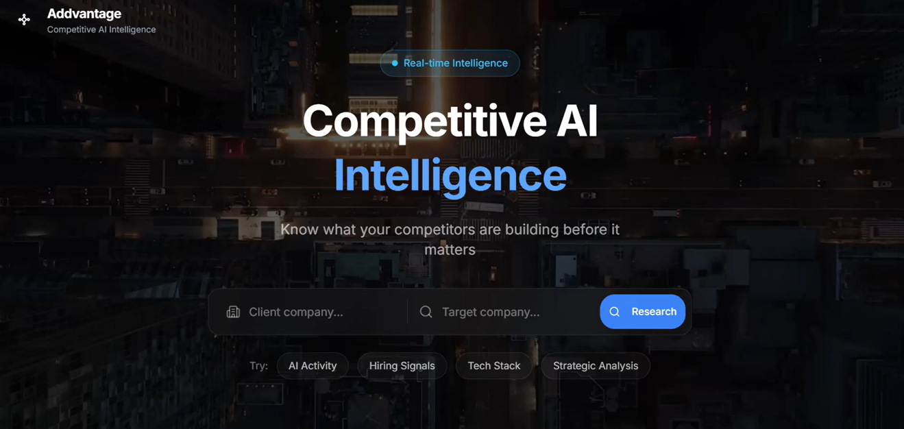 The vision is simple — make Addvantage the one platform where any company can see exactly what their competition is building, spending, and planning. Before it's too late.