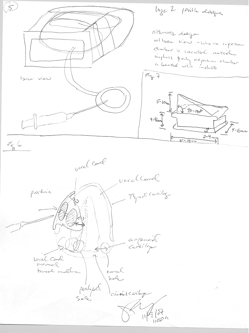 Determining the optimal injection material. Needs to be biodegradable, have adequate viscosity for optimal vocal cord vibration while being thin enough for easy withdrawal/removal if needed. The implant design must be able to control the direction of implant expansion with injection of the medium. A simplified comparison would be modifying the size and shape of a breast implant, tissue expander, or balloon.