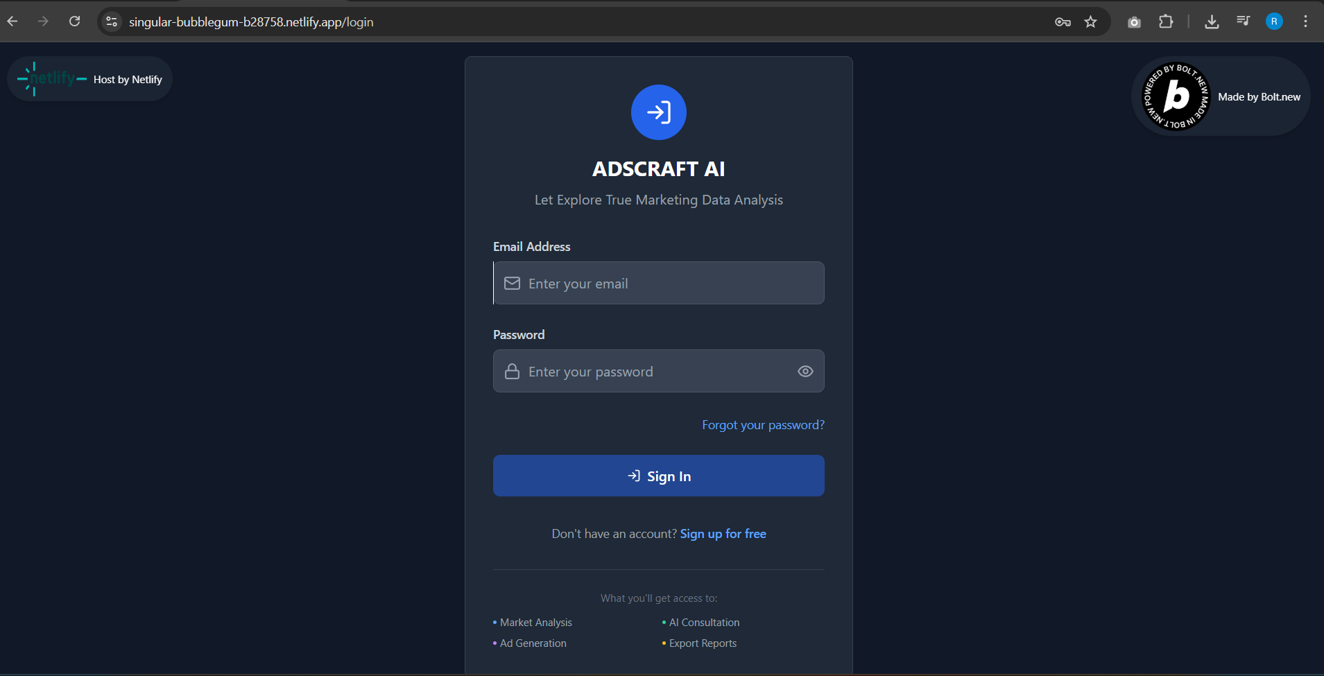 - Frontend & Backend: Built entirely on Bolt.new, using drag-and-code builder