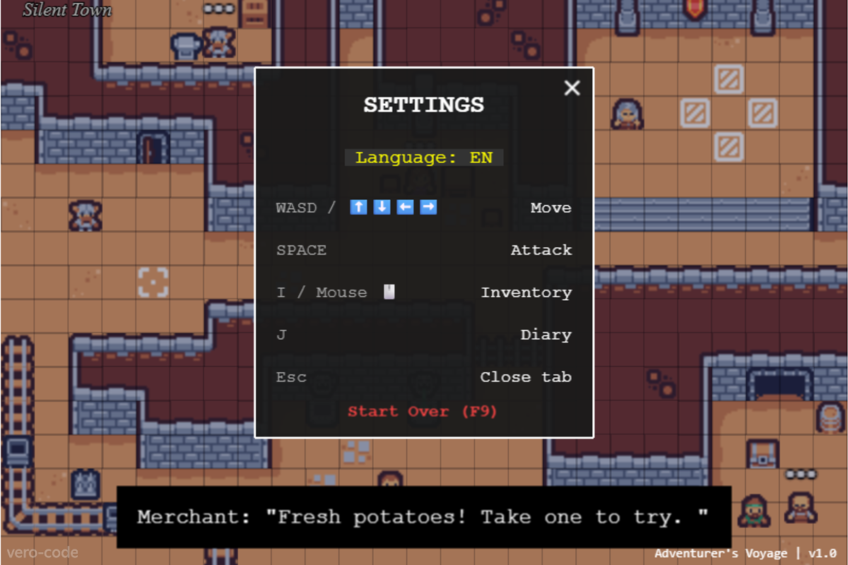 Silent Town: Your safe haven. Talk to unique NPCs, buy supplies from the Merchant, and prepare for the journey ahead.