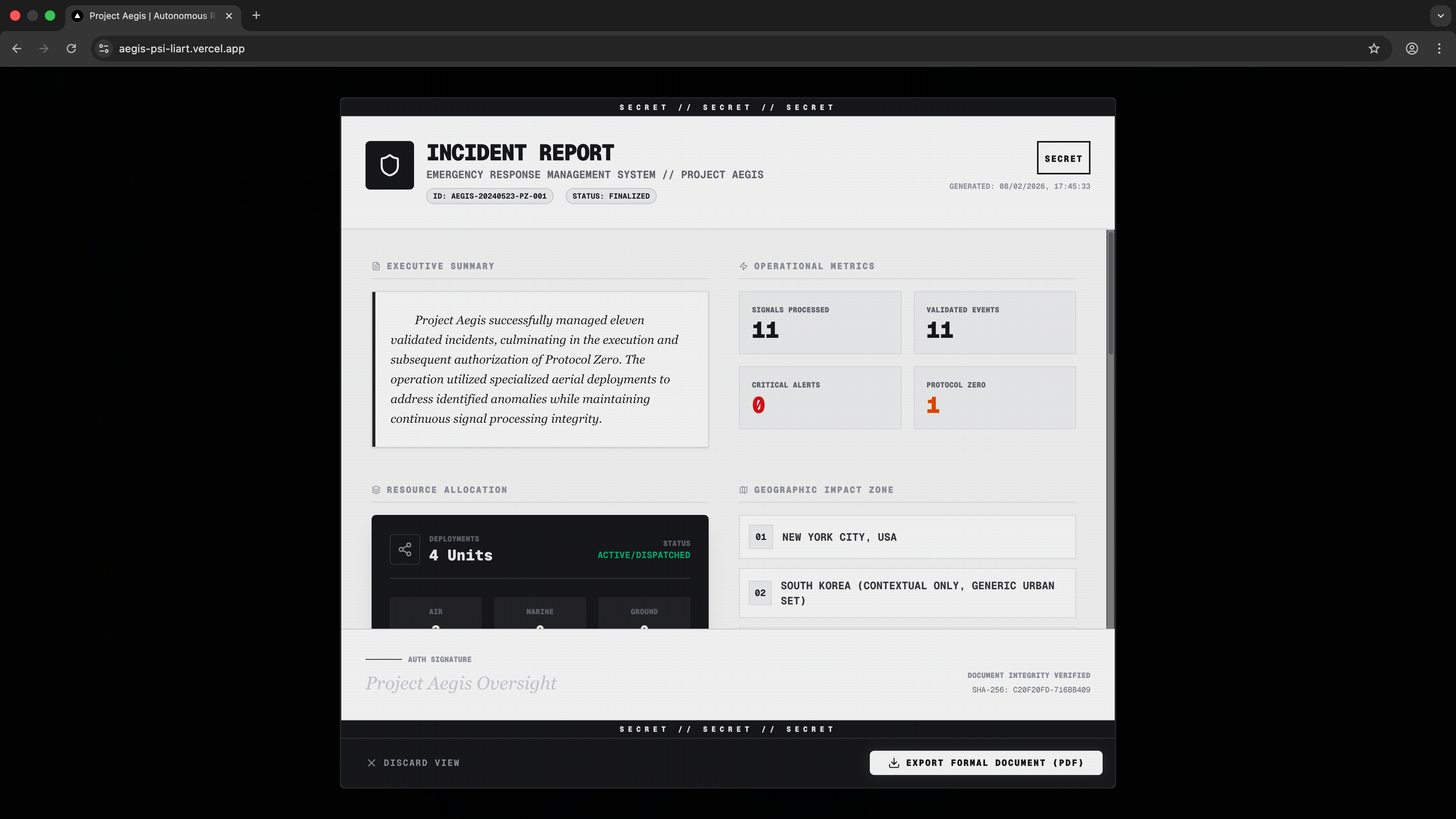 Protocol Zero: For high-stakes decisions (like deploying heavy assets), the AI flags uncertainty and requests "Voice of God" approval from the human commander, ensuring safety-by-design.