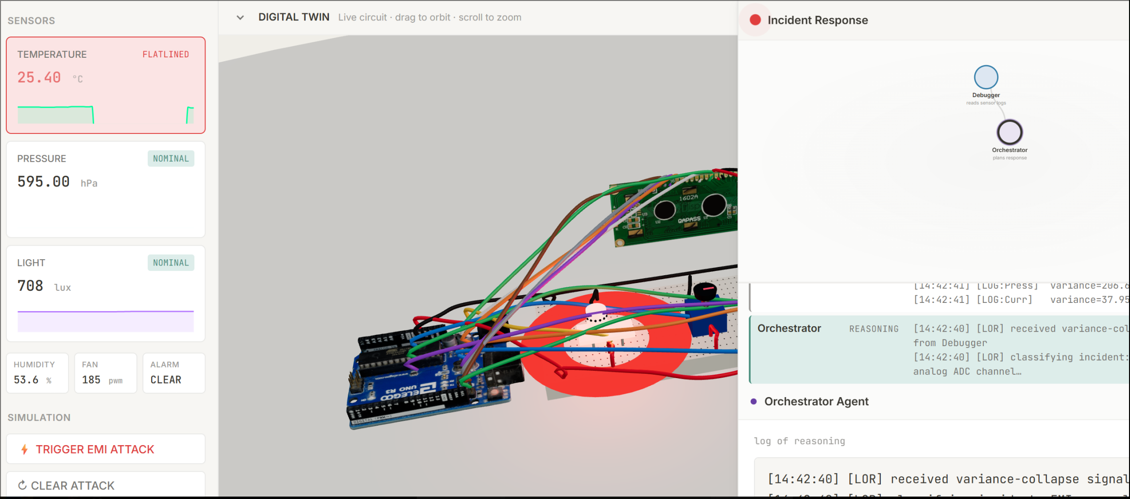 Hospitals, forward operating bases, and SCADA plants can't ship sensor data to the cloud, HIPAA, denied-comms, air-gaps. So when an attacker spoofs a sensor on the wire, no SOC ever sees it. We wanted to build the immune system for that gap: an on-prem model that patches firmware faster than an adversary can rewrite the attack.